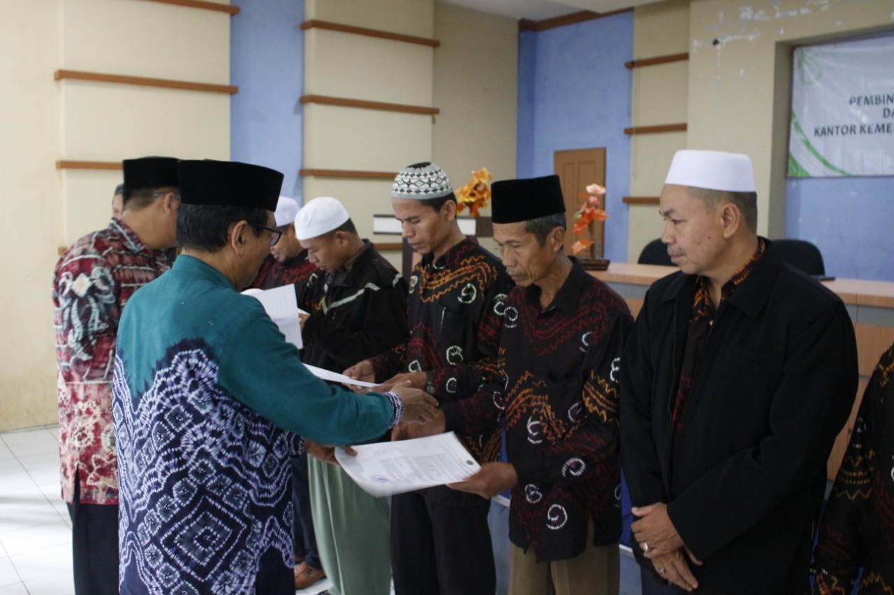 Penyerahan Surat Keputusan (SK) penyuluh agama non PNS HSU dan pembinaan penyuluh agama Islam PNS serta non PNS Kemenag HSU, di Aula MAN 1 Amuntai, Kamis (20/2/2020). foto : dew