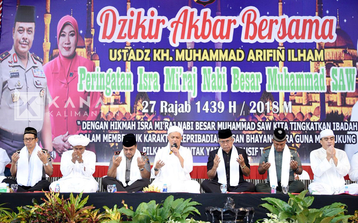 Ribuan jemaah menghadiri acara zikir akbar dan doa bersama yang digelar oleh Polda Kalsel dalam rangka memperingati Isra Mi’raj Nabi Muhammad SAW 1439 Hijriyah.  Zikir dan doa bersama yang digelar Polda Kalsel berlangsung di GOR Rudy Resnawan, Banjarbaru menghadirkan dua Ustadz Arifin Ilham dan KH Zuhdiannor -Guru Zuhdi-. Ribuan jamaah memadati GOR Rudy Resnawan dengan daya tamping 5 ribu orang.