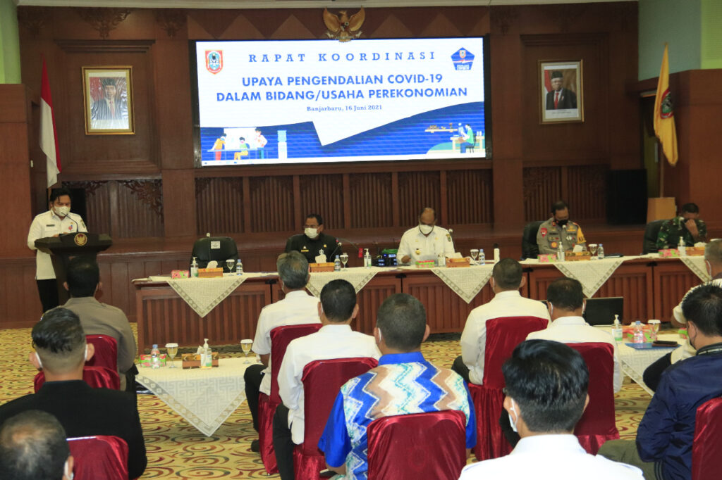 Rapat koordinasi (Rakor) digelar Pemprov Kalsel upaya pengendalian Covid-19 dalam bidang usaha perekonomian bersama Bupati/Wali Kota, Sekda se Kalsel, Rabu (16/6/2021).