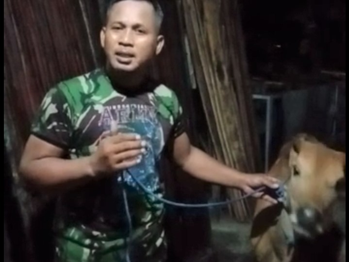 Saat ini, sapi tersebut diamankan oleh Babinsa Supeno, di rumahnya di Sumberadi, Kelurahan Sungai Besar, Banjarbaru.