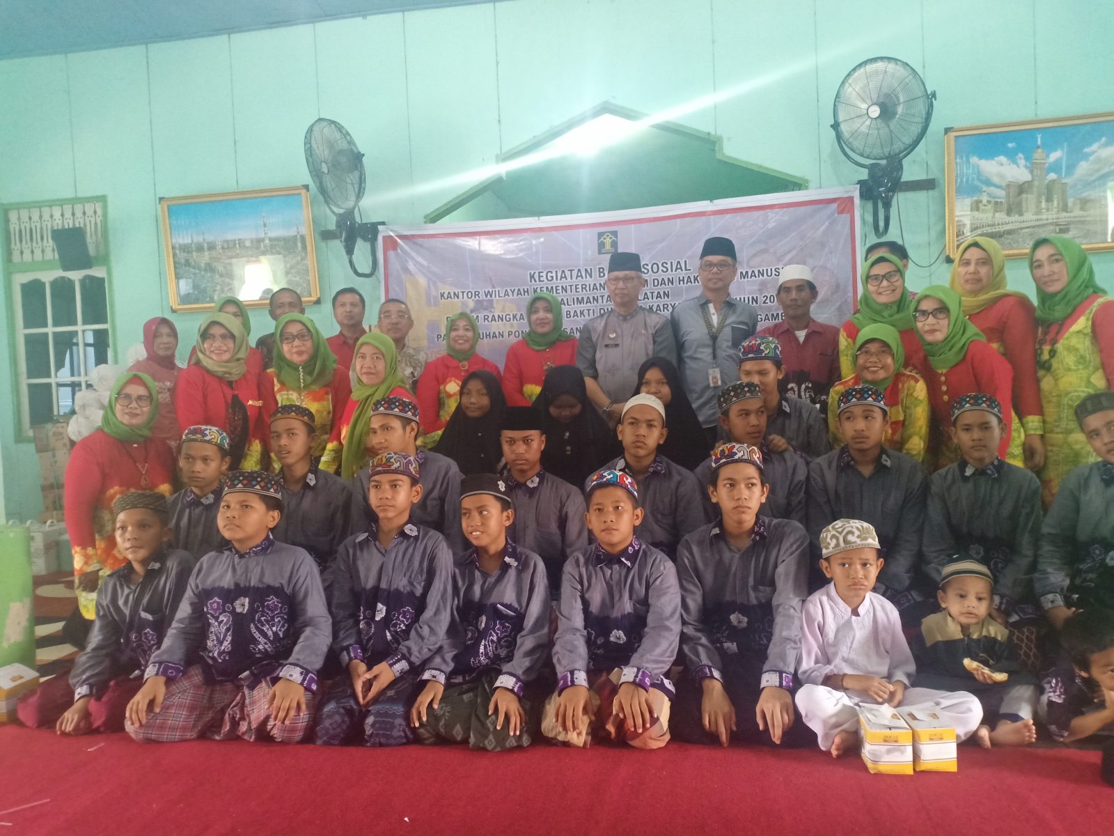 Suasana sederhana, namun hikmat dirasakan puluhan anak yatim ini. Bagaimana tidak, mereka mendapatkan bantuan dari Kemenkumham Kalsel berserta jajaran Unit Pelaksana Teknis (UPT) baik Kantor Imigrasi Kelas I Banjarmasin dan Lembaga Permasyarakat (Lapas) seluruh Kalsel.