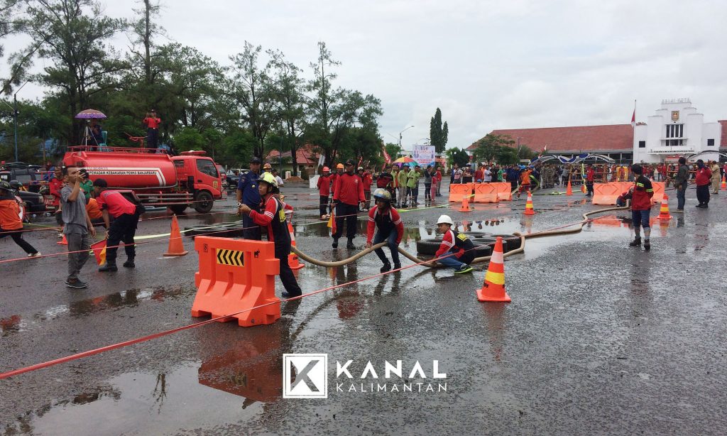 Ya, lomba ketangkasan pemadam kebakaran se-Kota Banjarbaru dalam rangka HUT Damkar ke-99 (1 Maret 1999-1 Maret 2018). Sebelum lomba ketangkasan berlangsung, pukul 08.00 Wita tdilaksanakan apel gabungan Damkar. Walau sempat diguyur air hujan, tidak membuat semangat para anggota damkar menyerah.