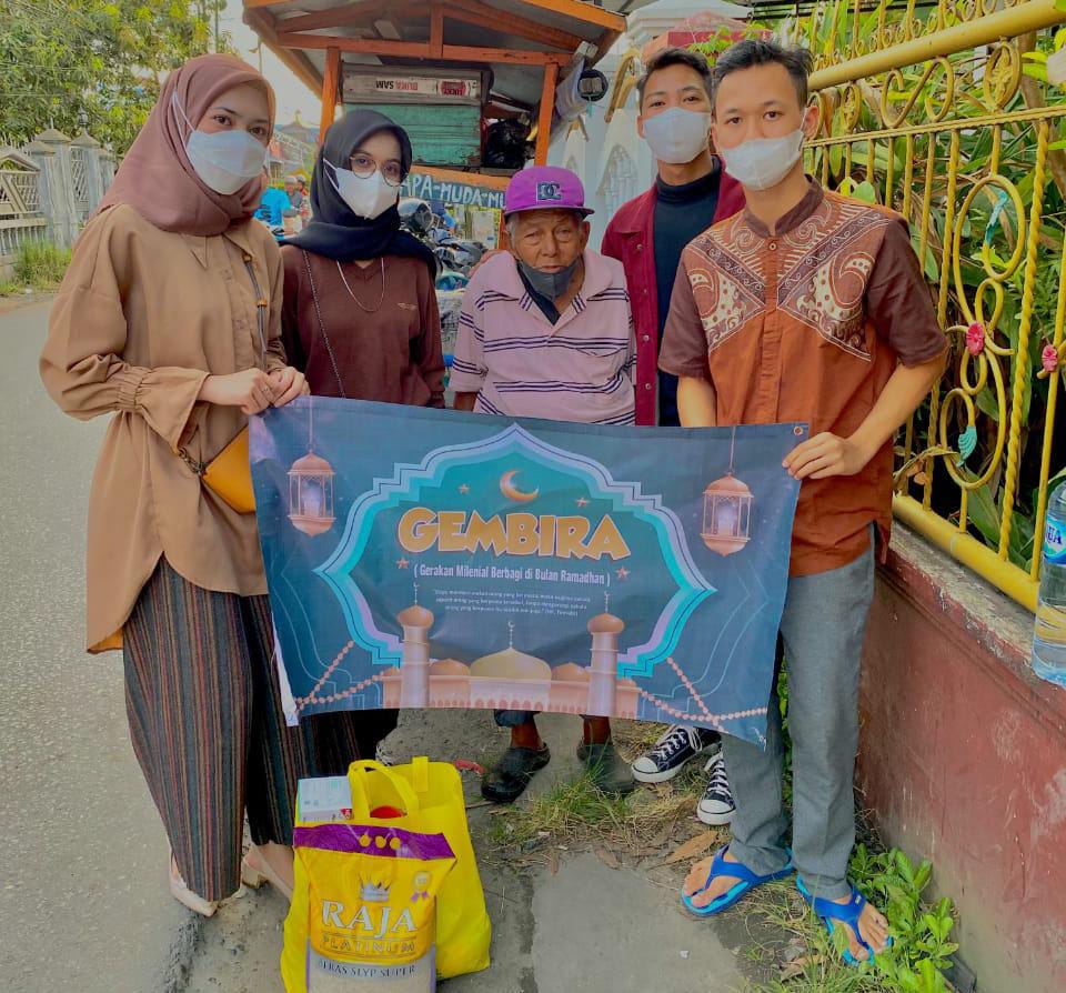 Selanjutnya, mereka membagikan ke orang sekitar yang melintas di lokasi secara gratis. Tak hanya tim GEMBIRA juga memberikan 1 paket sembako kepada Abdul Salam.