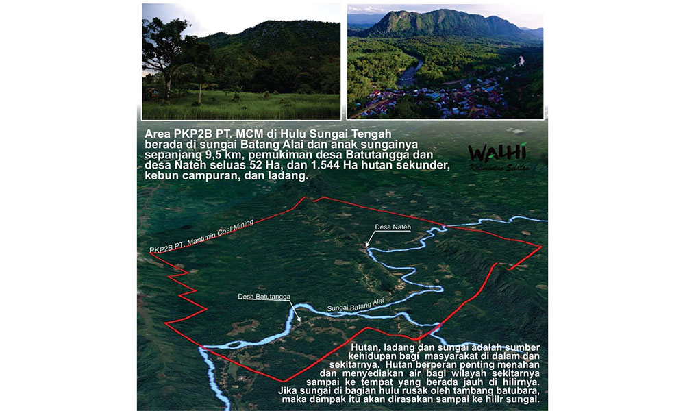 BANJARBARU, Kementrian ESDM menerbitkan Surat Keputusan (SK) terkait penyesuaian tahap kegiatan perjanjian batubara PT MCM menjadi tahap kegiatan operasi produksi yang berlokasi di tiga kabupaten yaitu Tabalong, Balangan, dan Hulu Sungai Tengah. Salah satu lokasi yang nantinya menjadi tempat beroperasi tambanh adalah di Kecamatan Batang Alai Timur tepatnya di Sungai Batang Alai dengan luasan 1.955 hektare yang merupakan hulunya Gunung Meratus yang menjadi jantung Kalsel dan hilirnya berada di Barabai. Ini lokasinya: