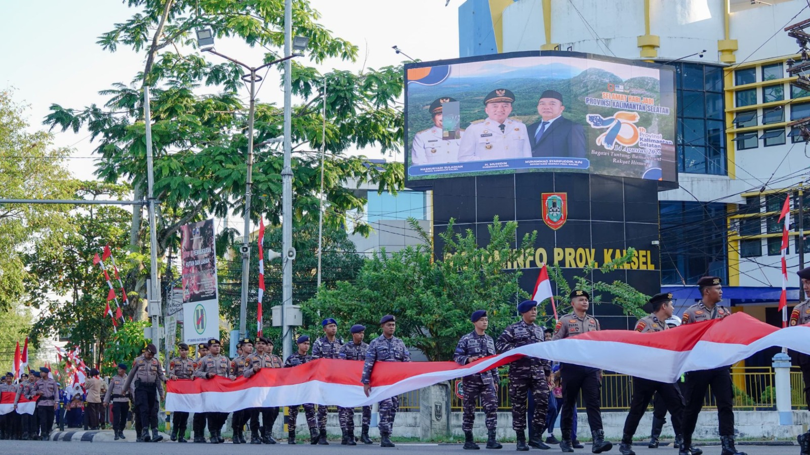 Sementara Kapolda Kalsel Irjen Pol Rosyanto Yudha Hermawan mengatalam, pembagian bendera Merah Putih menyambut HUT ke-80 Kemerdekaan RI dilakukan terus-menerus sampai pada 17 Agustus serentak di jajaran Polda Kalsel.