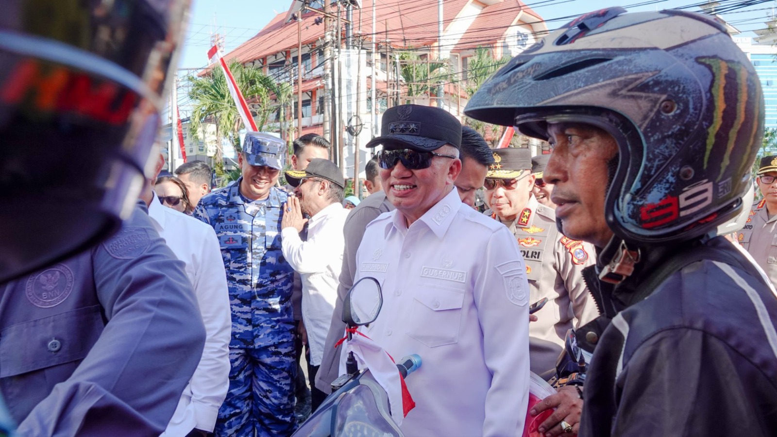 Gubernur H Muhidin Bagikan Bendera Merah Putih ke Pengendara