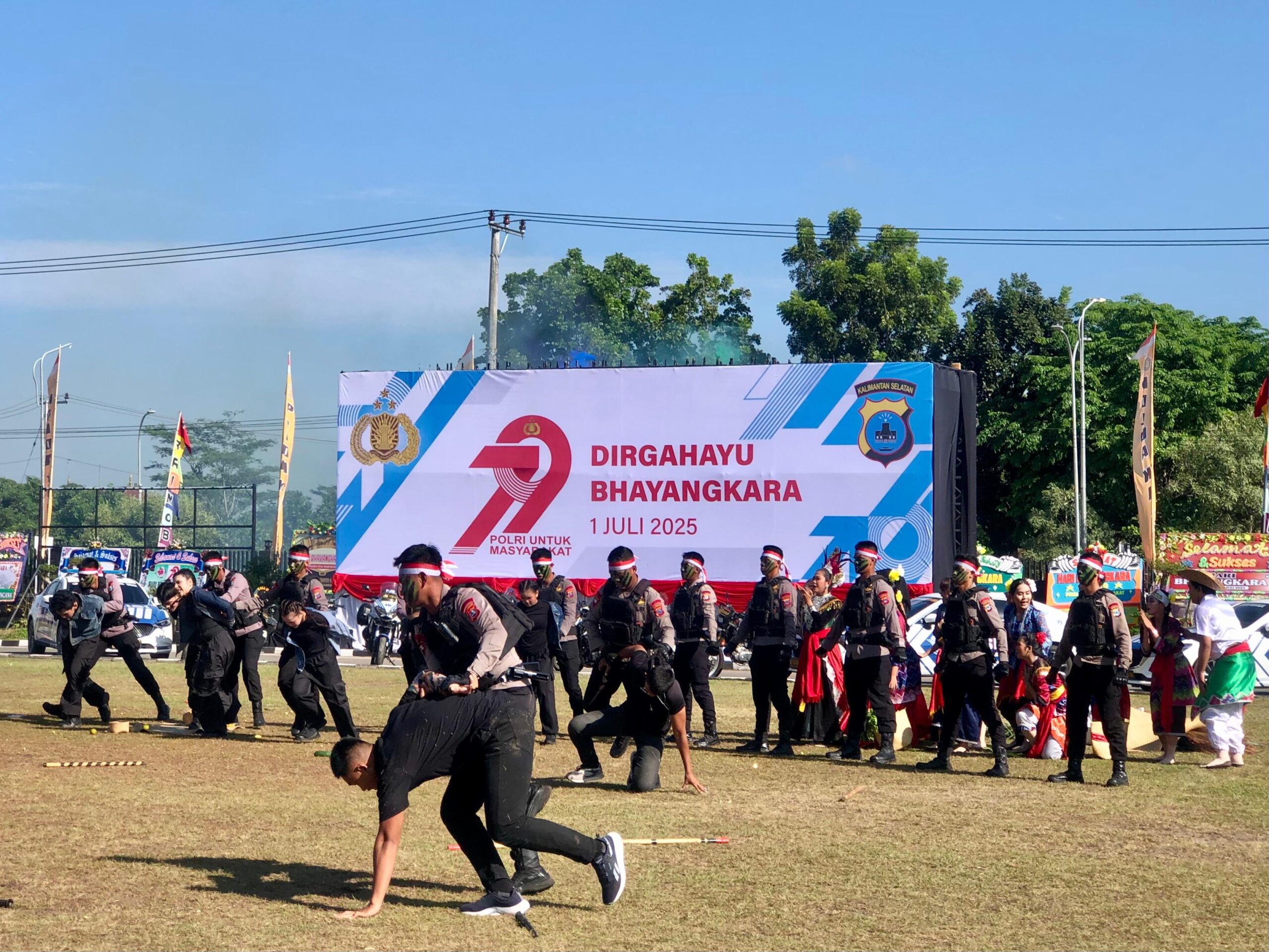 Selaras dengan tema “Polri Untuk Masyarakat” dalam rangkaian puncak Hari Bhayangkara ke-79 Polda Kalsel menampilkan tari kolosal yang dibawakan oleh berbagai macam sanggar berkolaborasi dengan polisi.