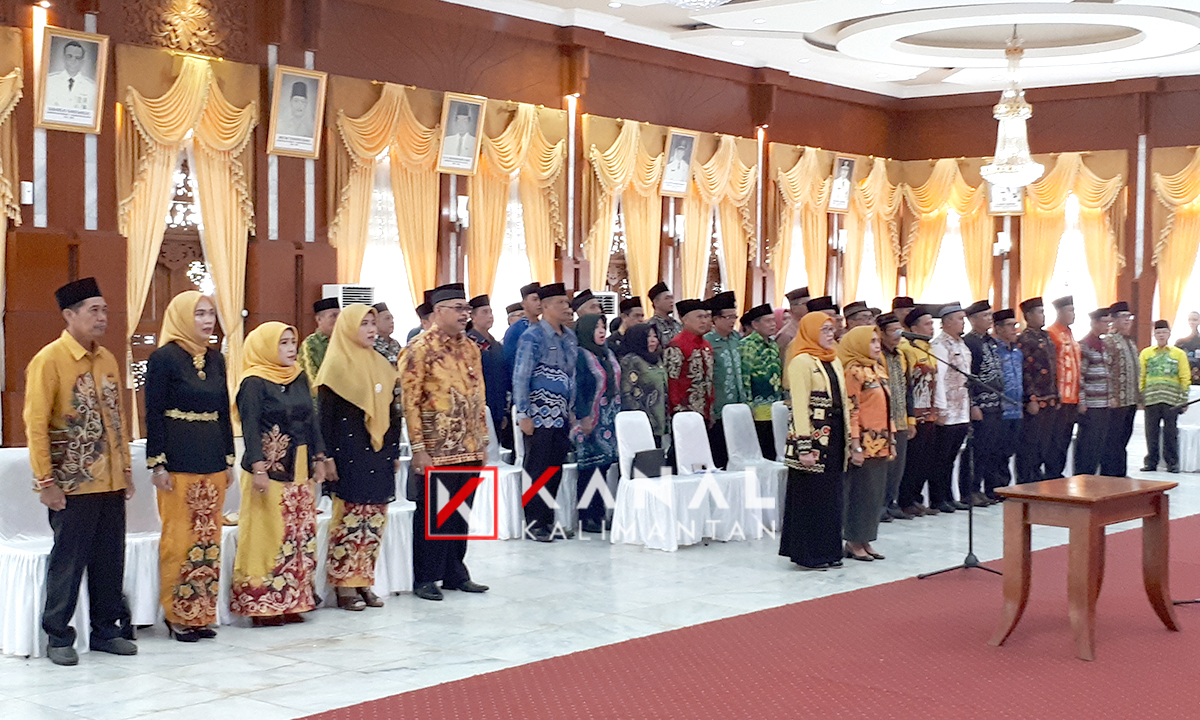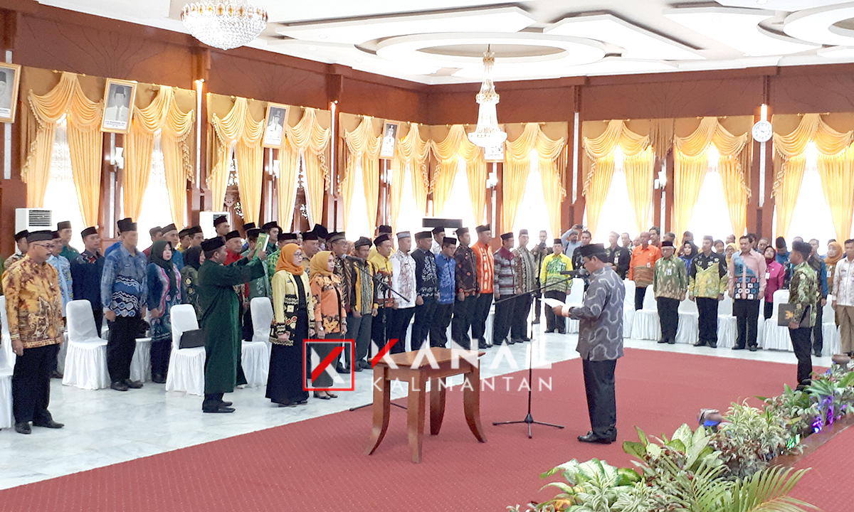 Sebelum proses pelantikan, para pejabat yang dilantik mengucapkan sumpah jabatan dipimpin langsung oleh Sahbirin Noor didampingi rohaniwan. Pelantikan yang berlangsung di gedung Mahligai Pancasila, Jumat (32/6) ini berlangsung khidmat.