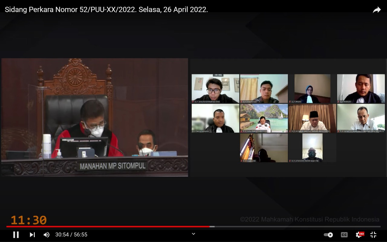 KANALKALIMANTAN.COM, JAKARTA – Mahkamah Konstitusi (MK) mulai menggelar sidang dengan agenda pemeriksaan pendahuluan perihal gugatan ambang batas Presidential Threshold (PT) 0% pada Pemilu oleh Dewan Perwakilan Daerah (DPD) bersama Partai Bulan Bintang (PBB), Selasa (26/4/2022).