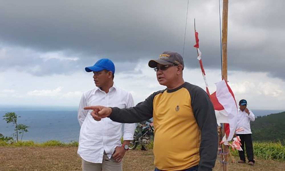 KOTABARU, Kepala Dinas Kehutanan Provinsi Kalimantan Selatan Hanif Faisol Nurofik, terpesona melihat keindahan alam di puncak Gunung Mamake, Desa Tirawan, Kecamatan Pulau Laut Utara, Kabupaten Kotabaru pada Sabtu (17/8)