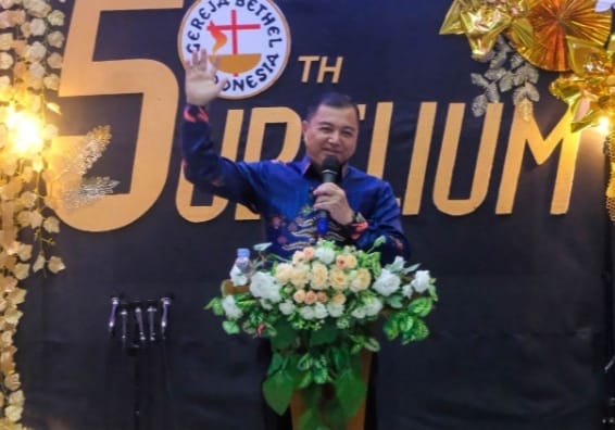 Wabup Dodo menyampaikan ucapan selamat atas usia emas GBI dan berharap gereja terus kokoh dalam pelayanan serta berkontribusi nyata dalam kehidupan bermasyarakat.