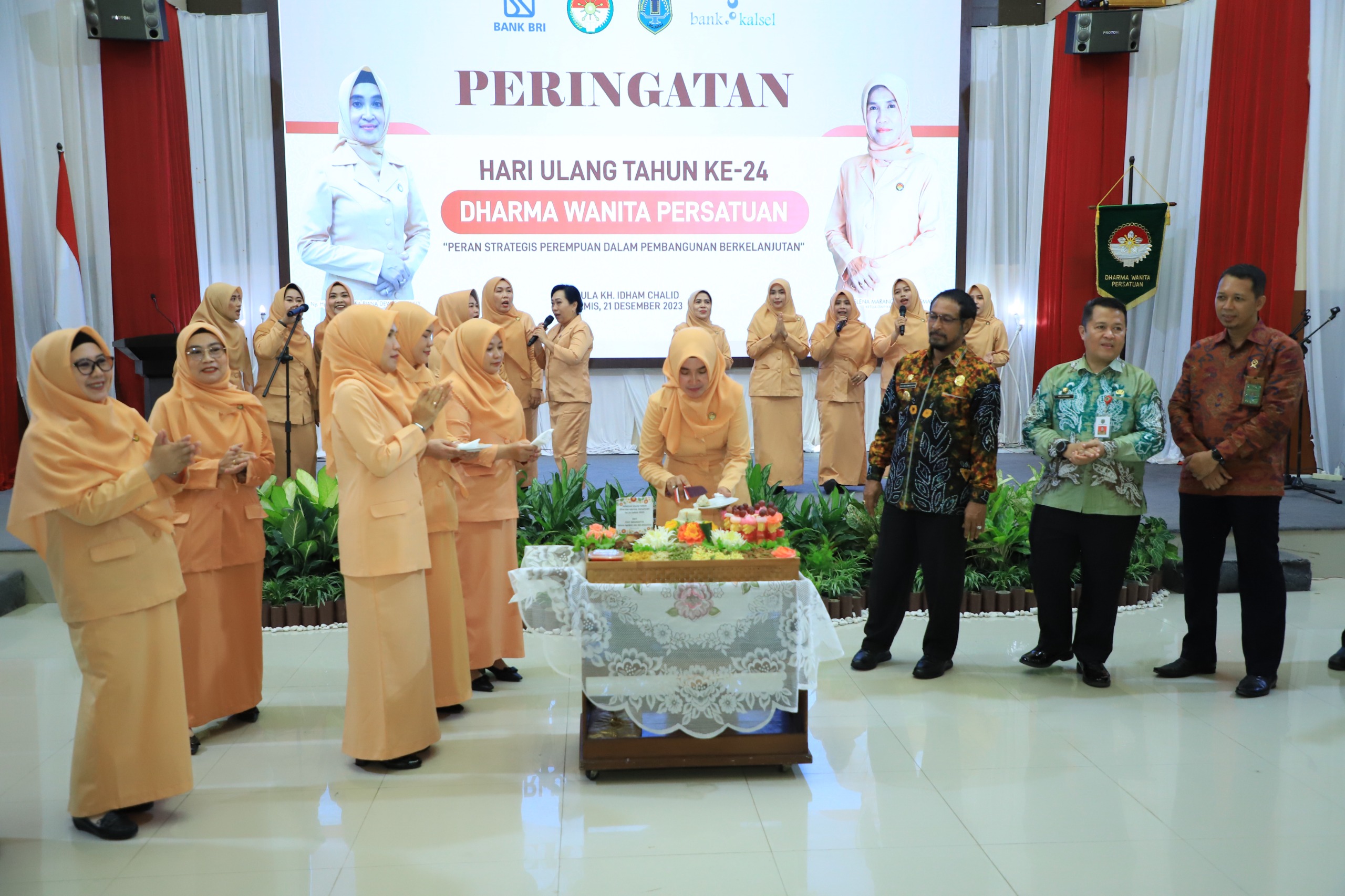 KANALKALIMANTAN.COM, AMUNTAI – Dharma Wanita Persatuan (DWP) Kabupaten Hulu Sungai Utara (HSU) menggelar puncak peringati Hari Ulang Tahun (HUT) ke-24 DWP di aula Dr KH Idham Chalid, Kamis (21/12/2023).