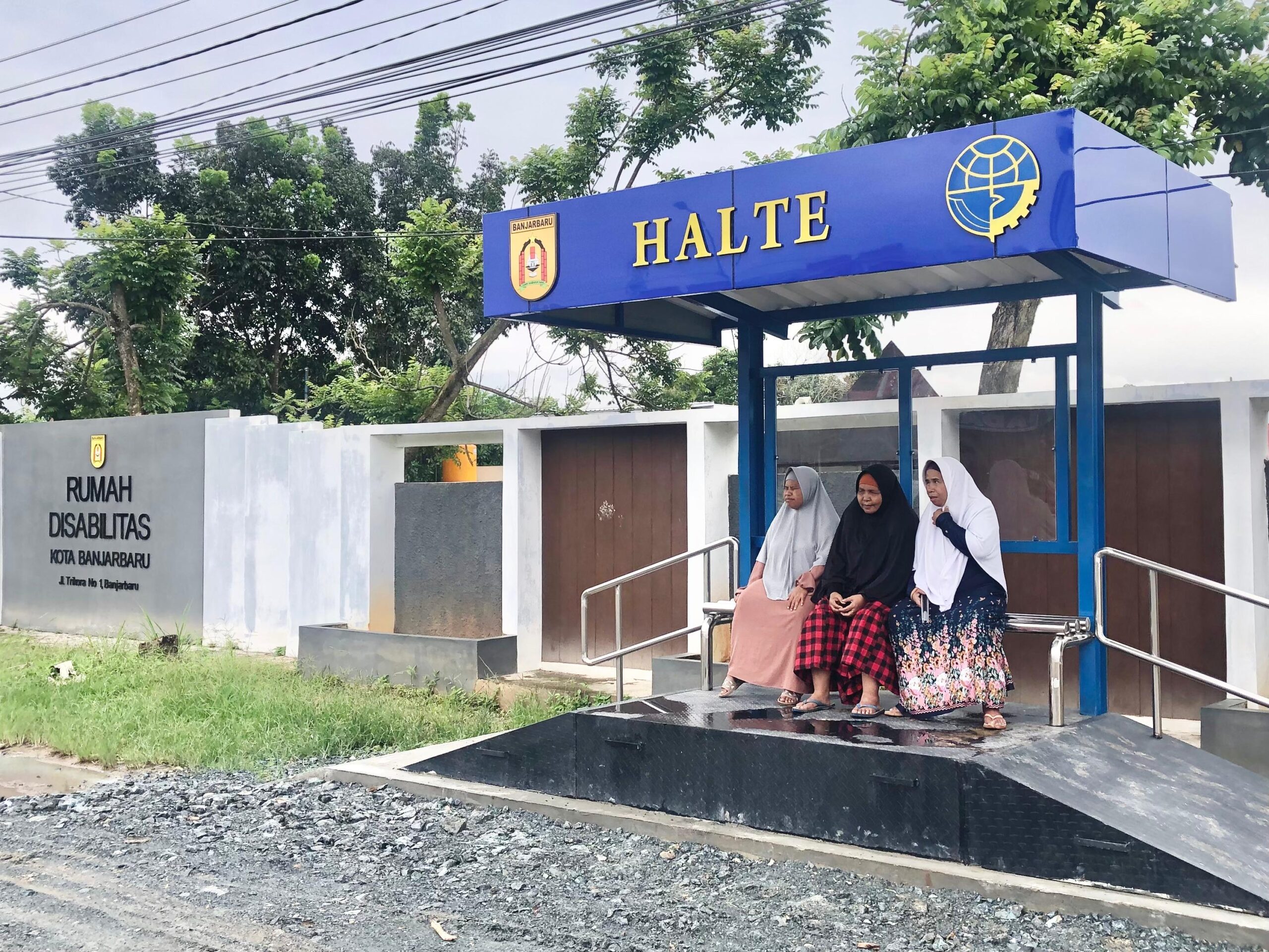 Sebuah halte portabel dibangun Dinas Perhubungan Kota Banjarbaru untuk kenyamanan pengguna Angkutan Feeder Trans Banjarbaru khususnya warga disabilitas mengakses sejumlah tempat.