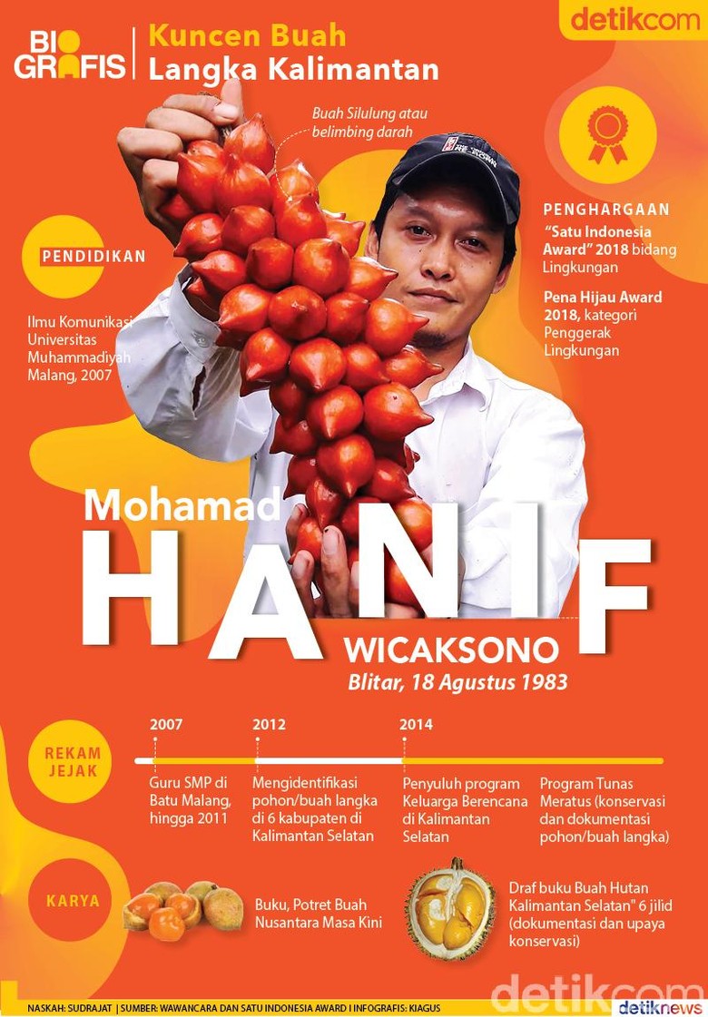 Pria kelahiran Blitar lulusan Sarjana Ilmu Komunikasi tersebut ketika pindah dari Jawa Timur ke Kalsel tahun 2011 mengaku menemui berbagai macam buah yang tidak pernah dilihatnya di Jawa. Semakin menarik menurut Hanif ketika ternyata masyarakat lokal Kalsel sendiri banyak yang belum pernah melihat pohon dari buah-buahan tersebut.