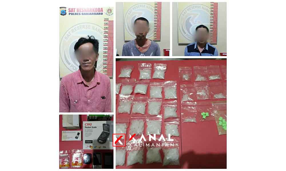 BANJARBARU, Satuan Reserse Narkoba (Satresnarkoba), Polres Banjarbaru diback up Subdit I Ditresnarkoba Polda Kalsel berhasil mengamankan 3 orang pelaku pengedar narkoba di tiga lokasi berbeda.