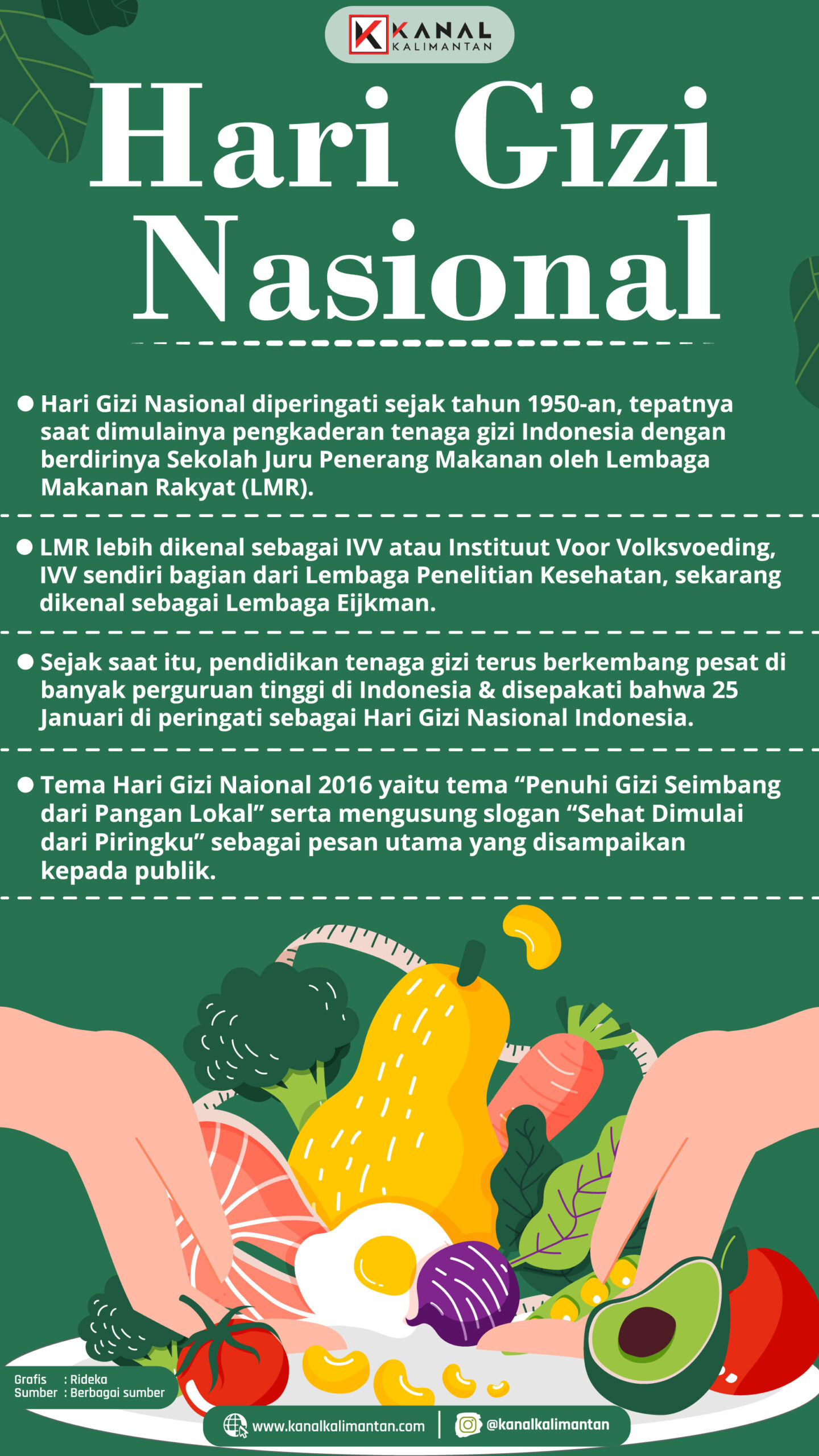 KANALKALIMANTAN.COM – Hari Gizi Nasional yang diperingati setiap tanggal 25 Januari merupakan momentum penting dalam menggalang kepedulian serta meningkatkan komitmen berbagai pihak untuk mewujudkan Indonesia Sehat melalui penerapan konsumsi gizi seimbang dan dukungan terhadap produksi pangan yang berkelanjutan.