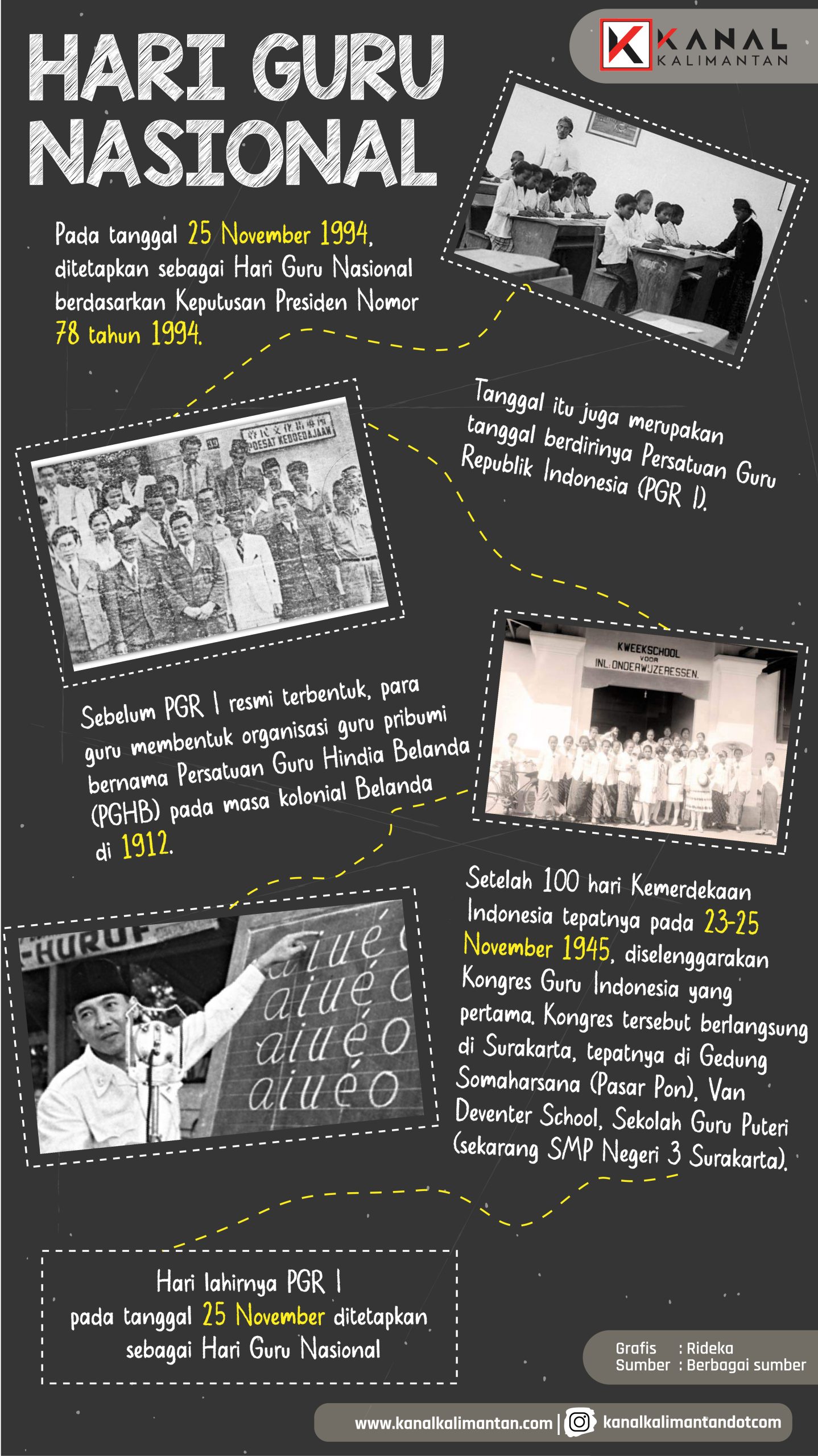 KANALKALIMANTAN.COM – Sejarah Hari Guru Nasional diawali dengan pembentukan Persatuan Guru Republik Indonesia (PGRI) yaitu organisasi di Indonesia yang anggotanya berprofesi sebagai guru.