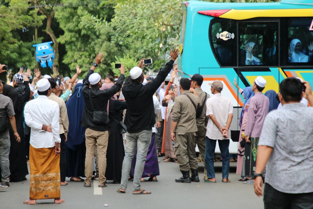 Keluarga jemaah tersebut mulai berdatangan sekitar pukul 13.30 Wita untuk menyaksikan pelepasan secara dekat.