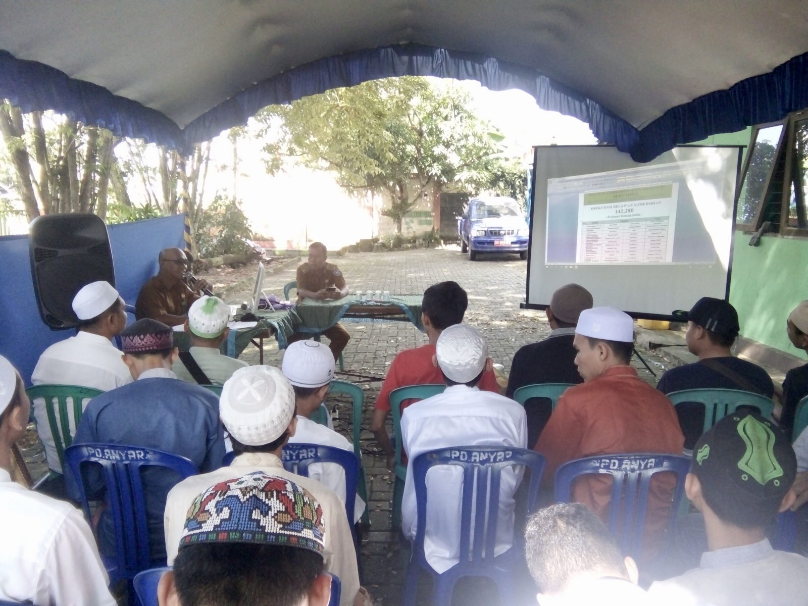 MARTAPURA, Puluhan koordinator relawan kebersihan Haul Abah Guru Sekumpul ke-14 menggelar rapat pemantapan dan kordinasi di halaman kantor Kelurahan sekumpul Kecamatan Martapura, Jalan Pendidikan RT 2 RW 01, Selasa (5/3). Terdata ada 893 relawan kebersihan yang akan terlibat didikung 55 unit kendaraan roda empat sebagai angkutan sampah.