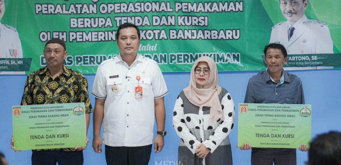 KANALKALIMANTAN.COM, BANJARBARU – Dinas Perumahan dan Permukiman (Disperkim) Kota Banjarbaru menyerahkan bantuan alat operasional rukun kematian berupa tenda dan kursi kepada 14 RT di Kecamatan Liang Anggang.
