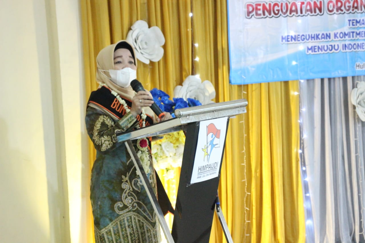 Hal ini diungkapkannya saat menghadiri kegiatan penguatan organisasi Himpunan Pendidik dan Tenaga Kependidikan Anak Usia Dini Indonesia (Himpaudi) yang digelar 26-27 Juni 2021 di Aula Dinas Pendidikan Kabupaten HSU.