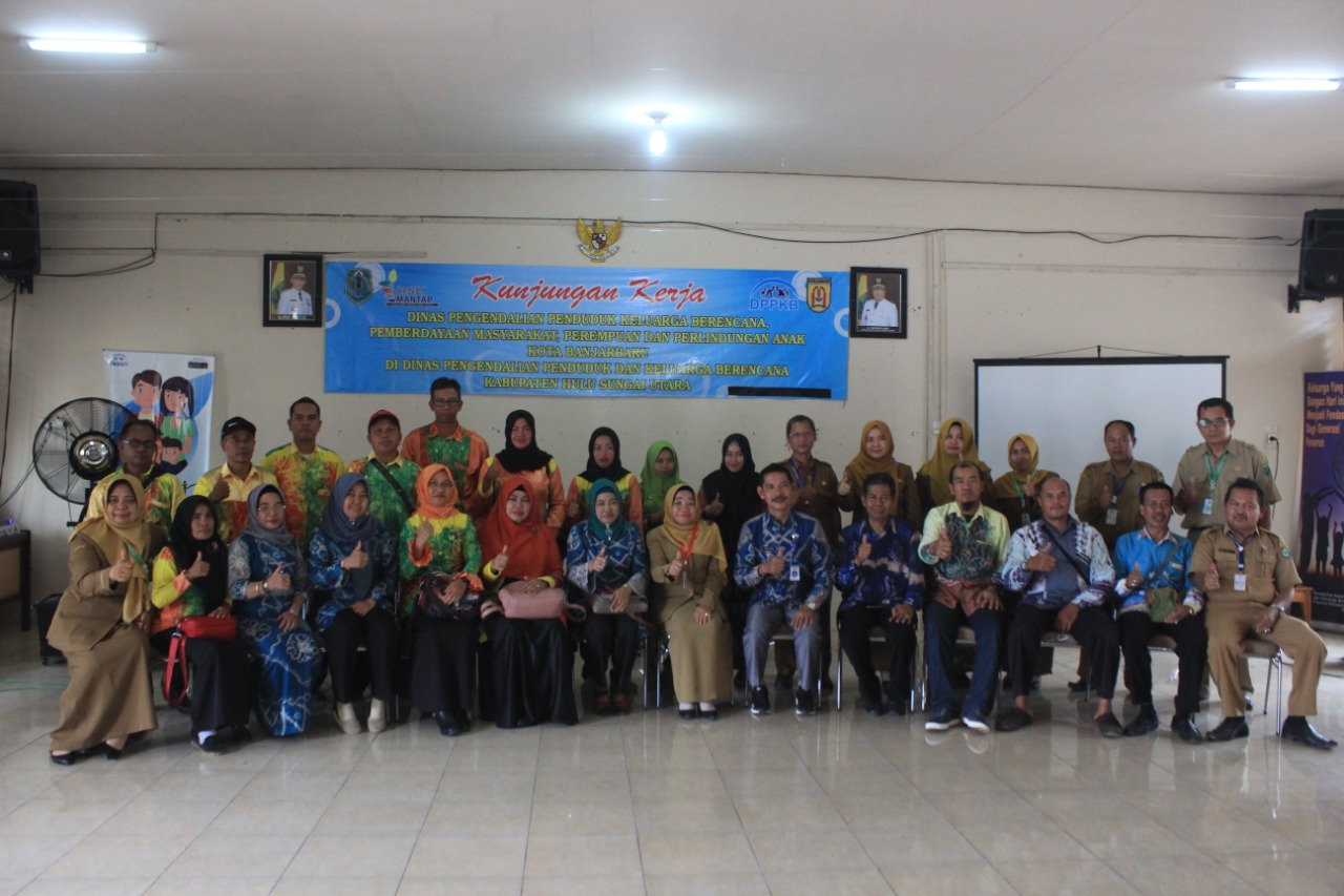AMUNTAI, Sambutan hangat diberikan Kepala Dinas Pengendalian Penduduk dan Keluarga Berencana (DPPKB) HSU Hj Anisah Rasyidah Wahid saat menerima kunjungan kerja sekaligus study DPPKB dan Dinas Pemberdayaan Masyarakat, Perempuan dan Perlindungan Anak (DPPPA) Kota Banjarbaru, Senin (30/9) di kantornya.