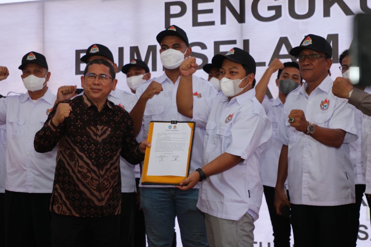 KANALKALIMANTAN.COM, MARTAPURA– Relawan Bumi Selamat Resque (Buser) 690 Banjar masa bhakti 2022-2025 oleh Bupati Banjar H Saidi Mansyur diwakili Asisten Perekonomian dan Pembangunan Ikhwansyah. Pengukuhan dilaksanakan di Ruang Terbuka Hijau (RTH) Alun-alun Ratu Zalecha Martapura, Banjar, Sabtu (26/3/2022).