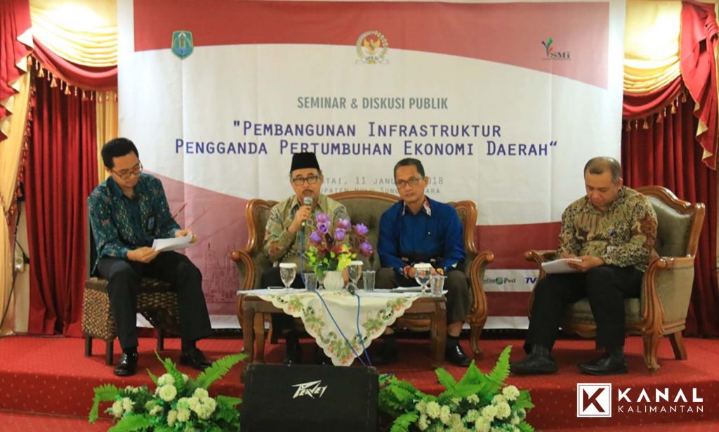 AMUNTAI, Pemkab Hulu Sungai Utara (HSU) menggelar seminar dan diskusi publik tentang “Pembangunan Infrastruktur Pengganda Pertumbuhan Ekonomi Daerah” pada Kamis (11/1). Acara ini menghadirkan nara sumber anggota Komisi X DPR RI Drs Saiful Rasyid, PT Sarana Multi Infrastruktur (SMI) Eri Hartito, Plt Sekda HSU H Suyadi, Ketua DPRD H Sahrujani, serta jajaran Forkopimda.