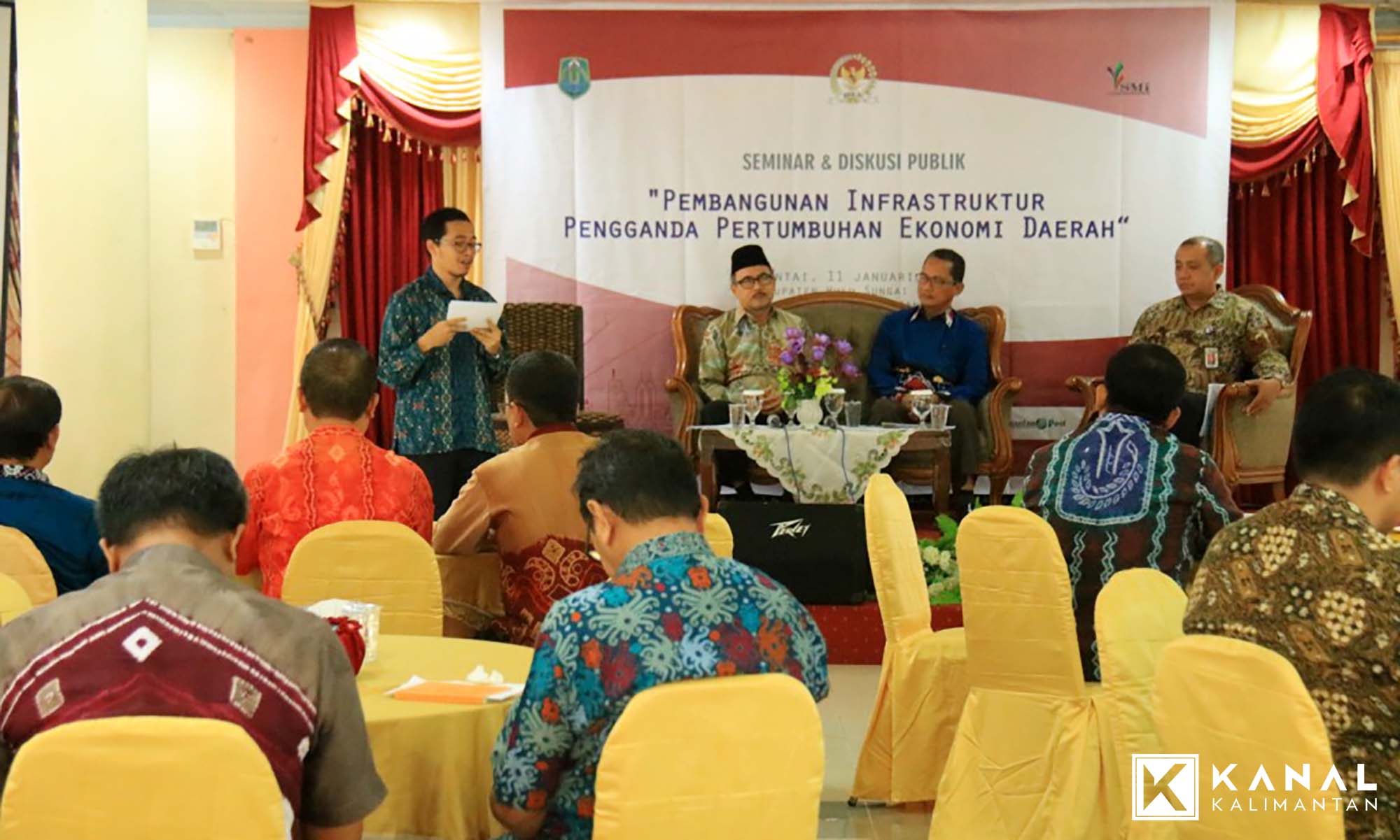 AMUNTAI, Pemkab Hulu Sungai Utara (HSU) menggelar seminar dan diskusi publik tentang “Pembangunan Infrastruktur Pengganda Pertumbuhan Ekonomi Daerah” pada Kamis (11/1). Acara ini menghadirkan nara sumber anggota Komisi X DPR RI Drs Saiful Rasyid, PT Sarana Multi Infrastruktur (SMI) Eri Hartito, Plt Sekda HSU H Suyadi, Ketua DPRD H Sahrujani, serta jajaran Forkopimda.