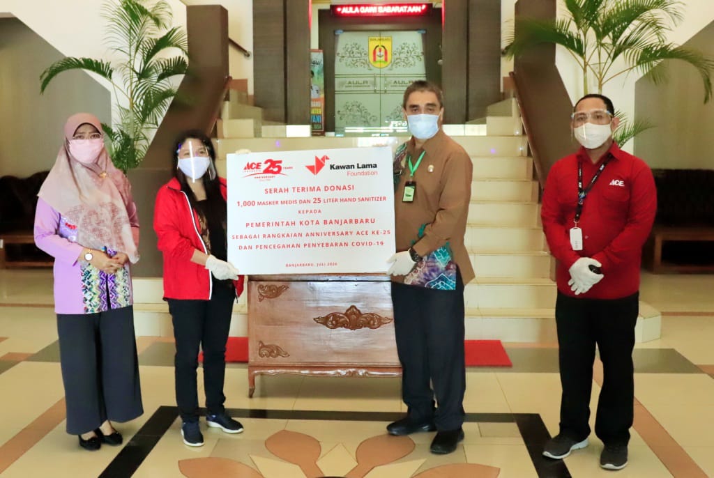 KANALKALIMANTAN.COM, BANJARBARU – Pemerintah Kota (Pemko) BanjarbarU menerima langsung bantuan Alat Pelindung Diri (APD) yang diberikan oleh PT Ace Hardware Q Mall Banjarbaru sebagai rangkaian Anniversary ACE Hardware ke-25, Kamis (30/7/2020) siang.