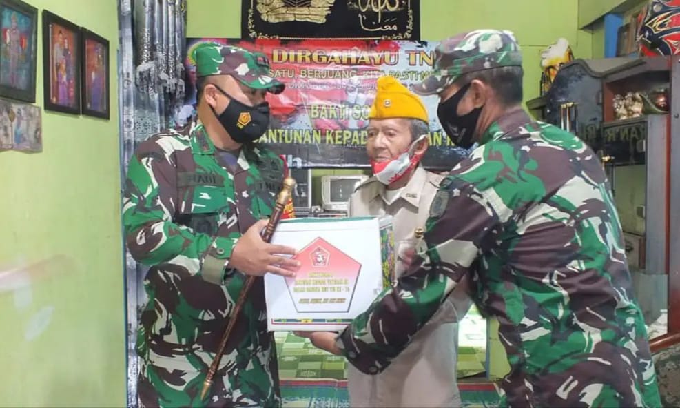 Silaturahmi sekaligus penyerahan santunan kepada legiun veteran dalam rangka Hari Ulang Tahun (HUT) ke-76 Tentara Nasional Indonesia (TNI) 2021.