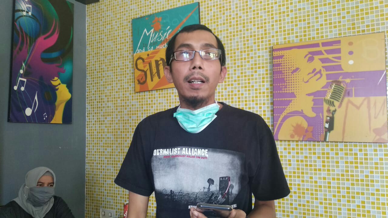 Kendati tak lagi dengan ciri khasnya yaitu berambut gondrong, Diananta dengan senang hati melayani rekan-rekannya sesama jurnalis di salah satu hotel di kawasan Sungai Lulut Banjarmasin, Selasa (18/8/2020) sore.
