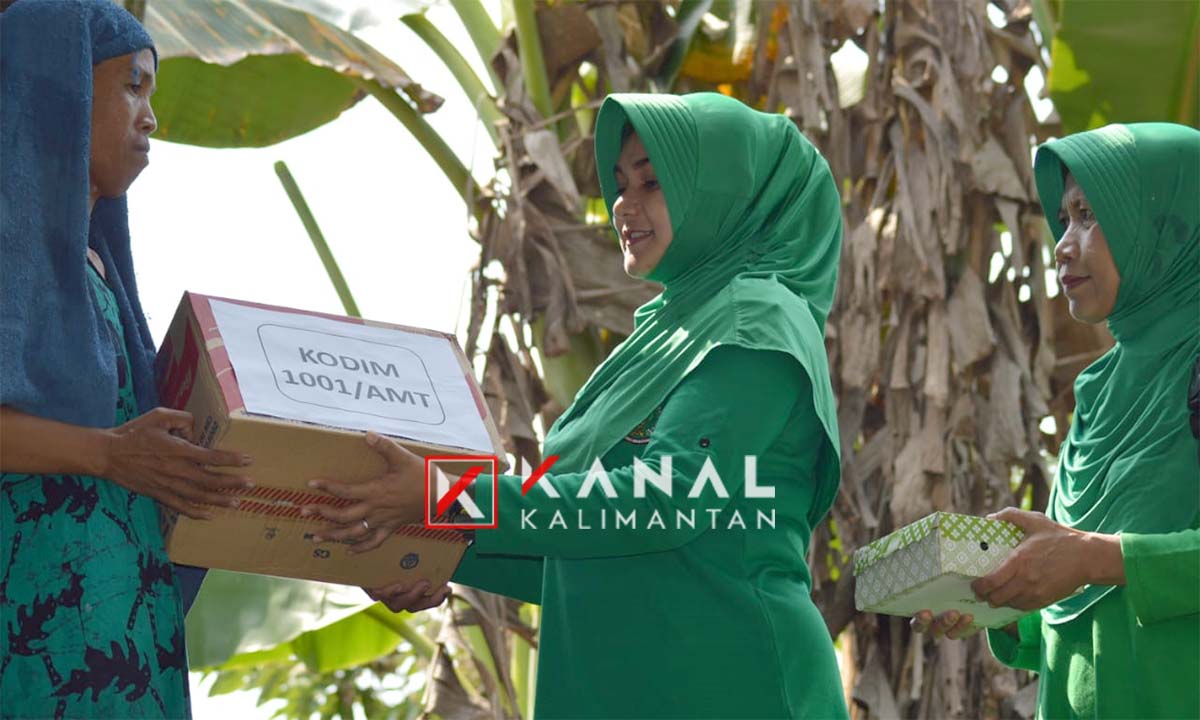 AMUNTAI, Kepedulian sosial ditunjukkan anggota Persit Kartika Chandra Kirana Cabang XXIV Dim 1001/Amuntai dengan memberi bingkisan kepada warga tidak mampu di wilayah Hulu Sungai Utara.