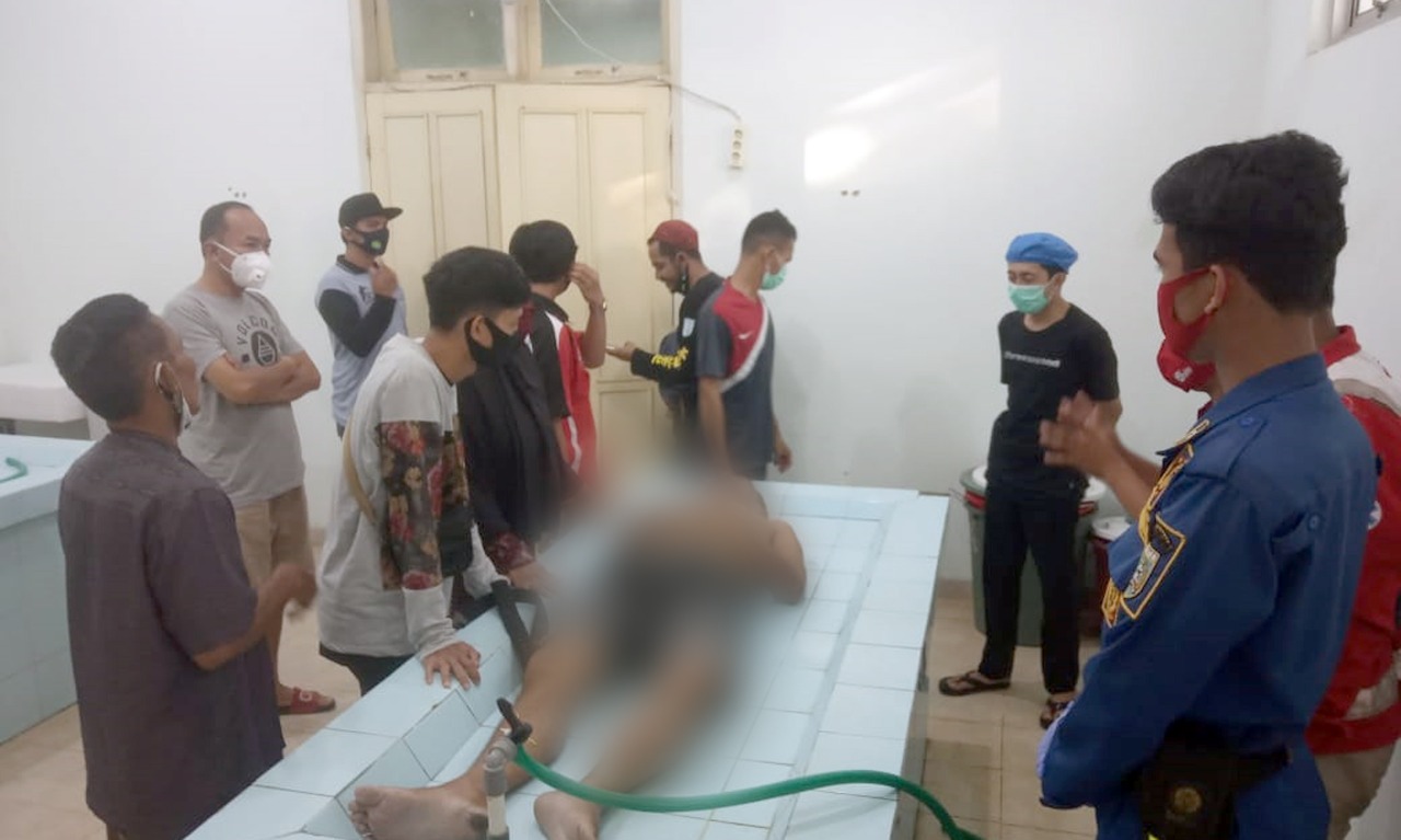 Gusti Rahmatillah (49) korban tenggelam, warga Jalan Sukaramai Gg Barakat RT 02 RW 1 Kelurahan Jawa, saat dibawa ke rumah sakit. foto: wahyu