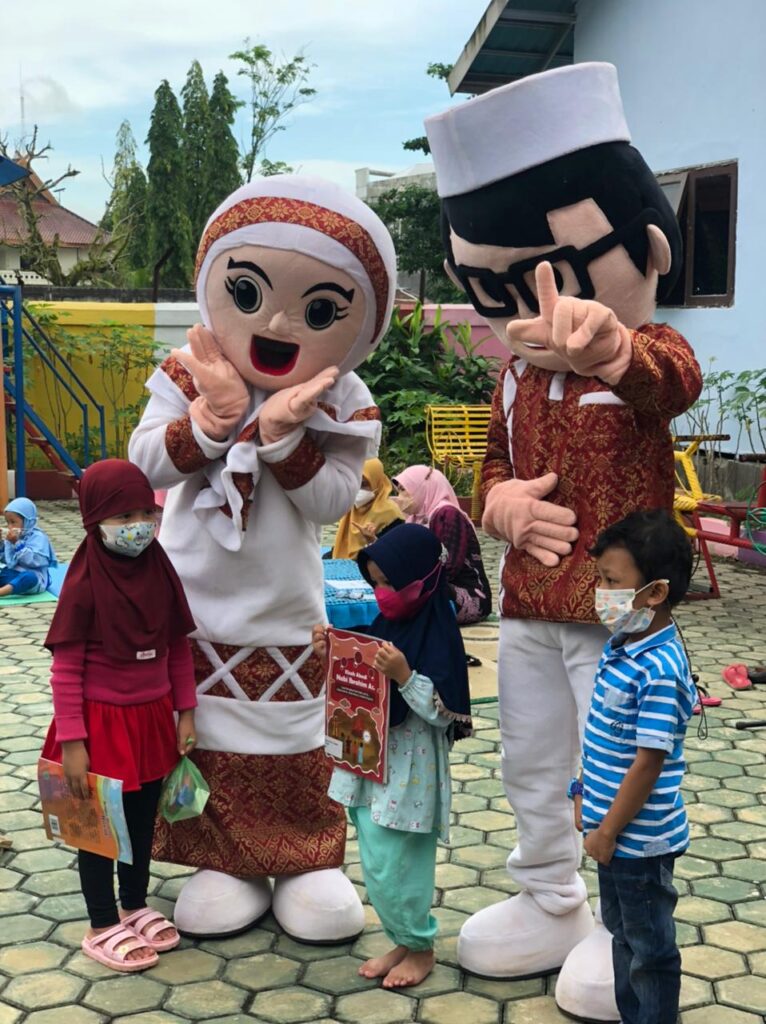 “Selain mendongeng, kami juga membawa badut muslim dan muslimah untuk menghibur anak-anak. Dongeng yang diceritakan sendiri bertema islami mengajarkan akhlak budi pekerti yang baik, kami juga mengajak anak-anak bergembira menyanyikan lagu-lagu Islami, dan mengajarkan rukun iman,” kata Nurliani, Sabtu (24/7/2021).