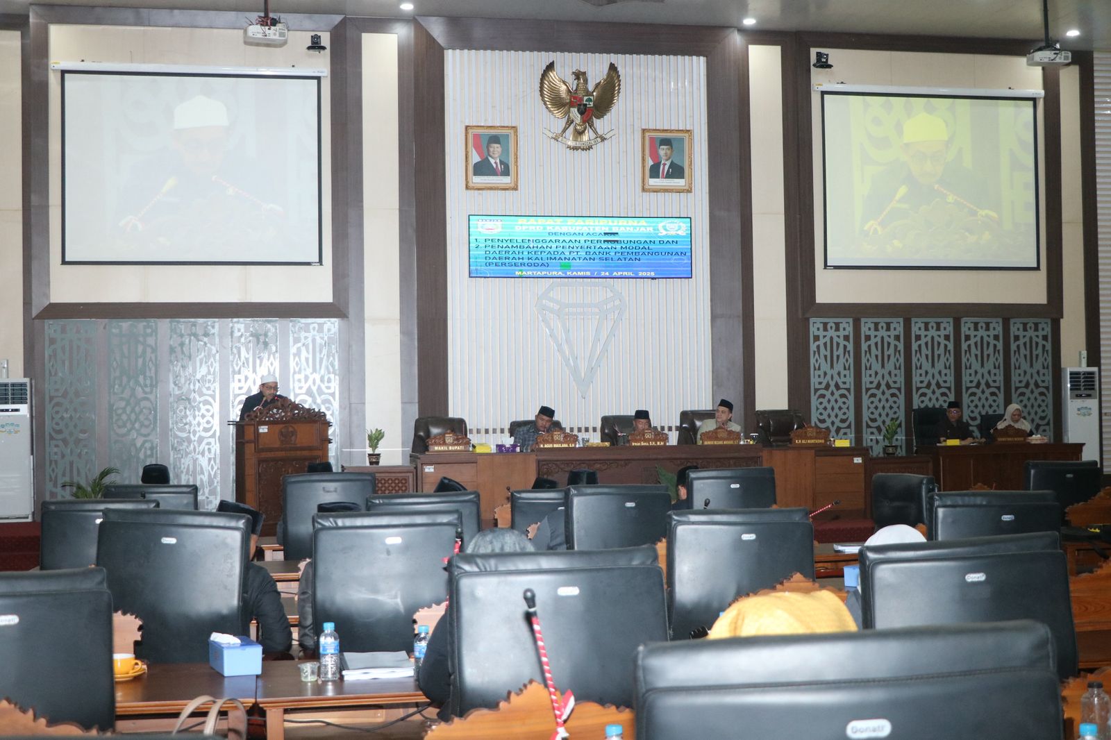 KANALKALIMANTAN.COM, MARTAPURA – Rapat paripurna dengan agenda Penyampaian Bupati atas Raperda tentang Penyelenggaraan Perhubungan dan Penambahan Penyertaan Modal Daerah kepada PT Bank Pembangunan Daerah Kalsel digelar di DPRD Banjar, Martapura, Kamis (24/4/2025) pagi.