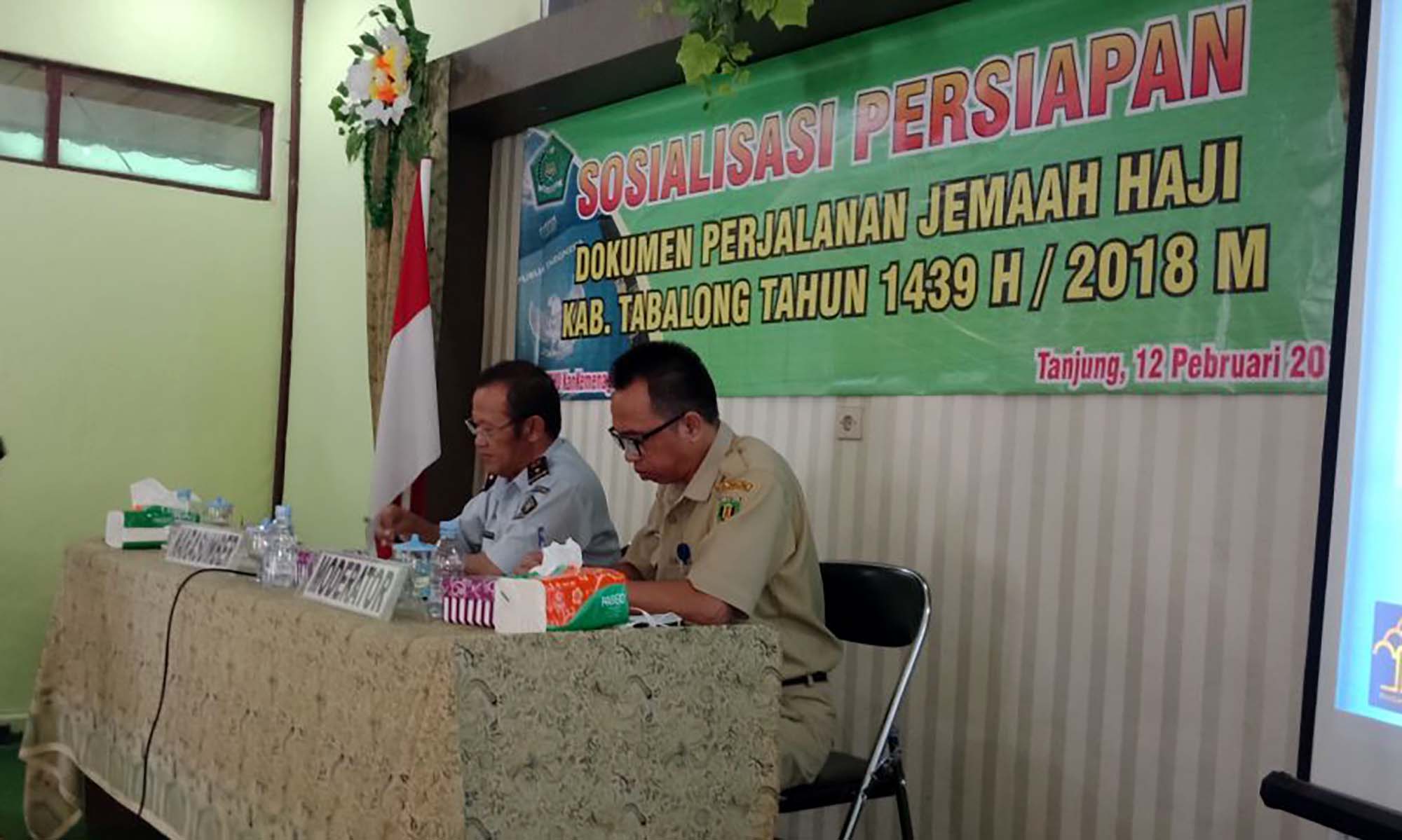 TABALONG, Untuk jemaah haji tahun 2018 ini, peserta calon jemaah haji Kabupaten Tabalong mendapatkan sosialisasi terkait prosedur penerbitan paspor bagi calon jamaah haji. Upaya ini menjadi wadah dalam rangka menyatukan persepsi, memberikan pemahaman, dan menambah wawasan mengenai pemberlakuan Peraturan Keimigrasian tentang penerbitan paspor serta pelaksanaan sistem pelayanan paspor.