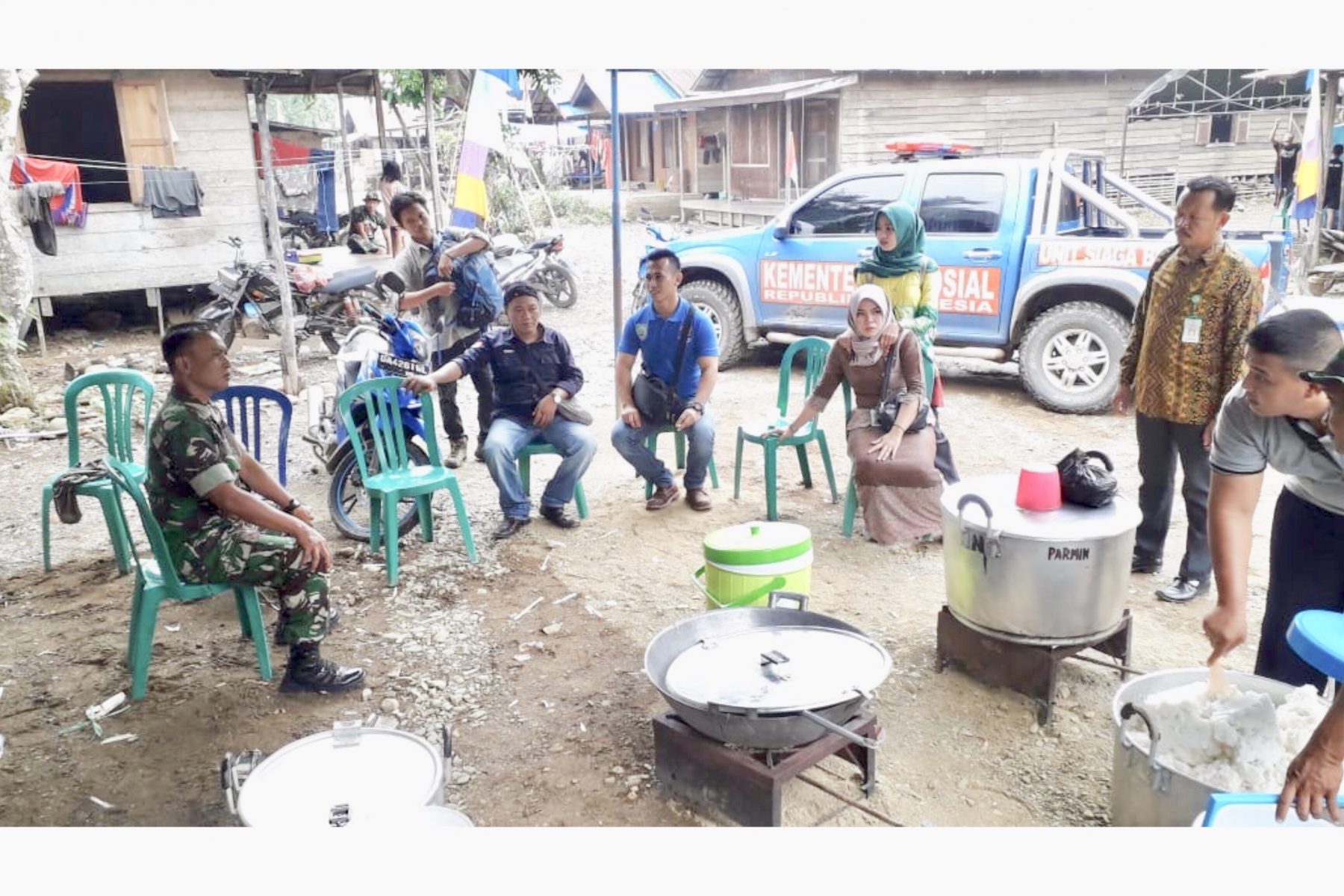 PARINGIN, Sejumlah Logistik yang disalurkan dari Dinas Sosial Kabupaten Balangan disambut baik Serka Rinto, selaku Perwira Piket Komando Taktis dalam program TMMD ke-106 Kodim 1001/Amuntai-Balangan di Desa Binuang Santang, Kecamatan Halong Kabupaten Balangan, Kamis (3/10) siang.