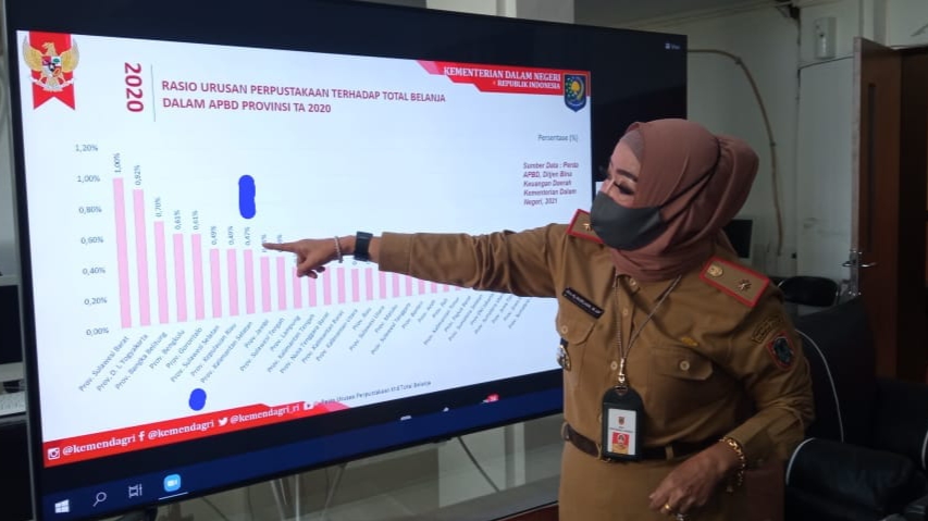 Kadispersip Kalsel Dra Hj Nurliani Dardie menunjukan data indeks pembangunan literasi Kalsel disebut menjadi yang tertinggi di Indonesia. Foto: dispersip kalsel