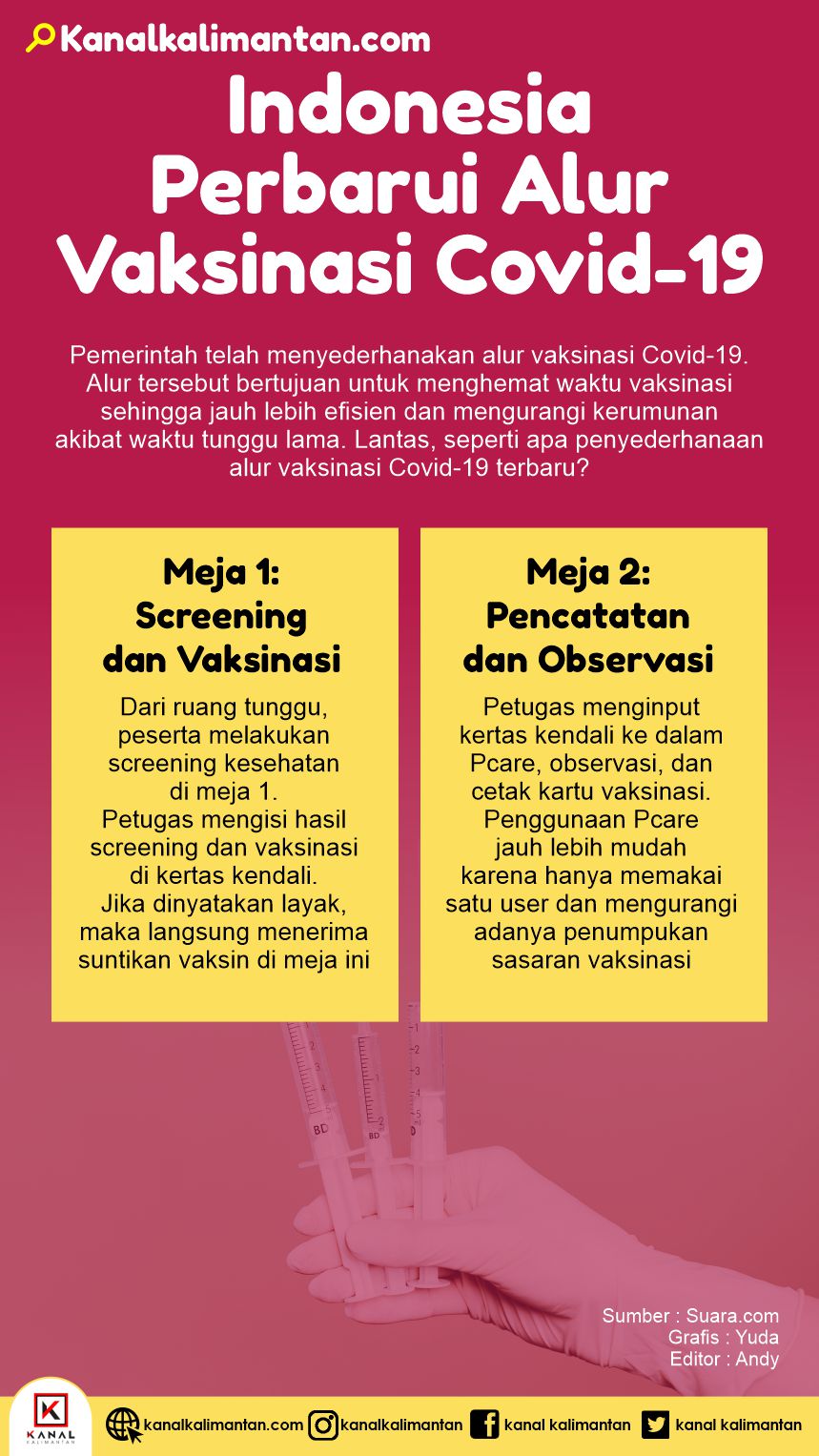 Jika sebelumnya alur pelaksanaan vaksinasi Covid-19 dilakukan di 4 meja, kini pemerintah telah menyederhanakannya menjadi 2 meja saja. Bagaimana alur terbarunya? Simak alur terbarunya berikut ini!