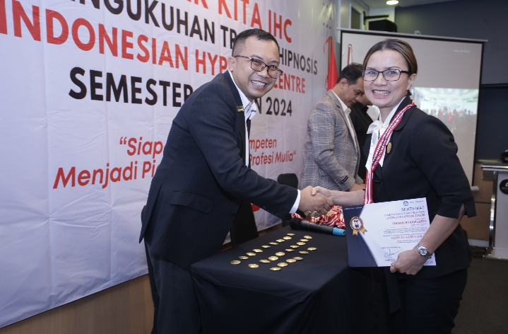 KANALKALIMANTAN. COM, JAKARTA – Indonesian Hypnosis Centre (IHC) menggelar acara pengukuhan 51 orang yang telah menyelesaikan Training of Trainer (TOT), kurikulum puncak IHC. Mereka dikukuhkan sebagai Trainer Hipnosis, pada Minggu (15/12/2024), di Hotel Asyana Kemayoran Jakarta.