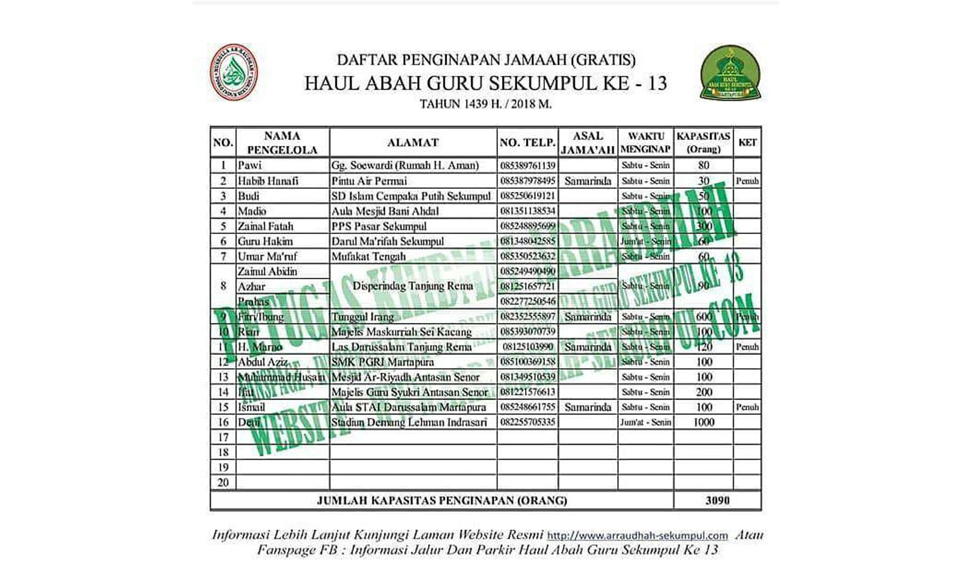 Ini 16 Titik dan Nomor Kontak Penginapan Gratis Haul Ke-13 Sekumpul