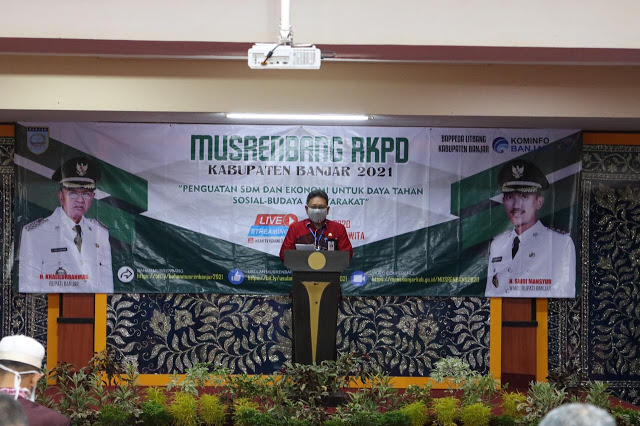 Sekda Banjar HM Hilman membuka secara resmi Musrenbang tersebut dengan tema “Penguatan SDM dan Ekonomi Untuk Daya Tahan Sosial Budaya Masyarakat”. Musrenbang melalui vicon dan live streaming youtube Intan TV difasilitasi Dinas Kominfo, Statistik dan Persandian Kabupaten Banjar.