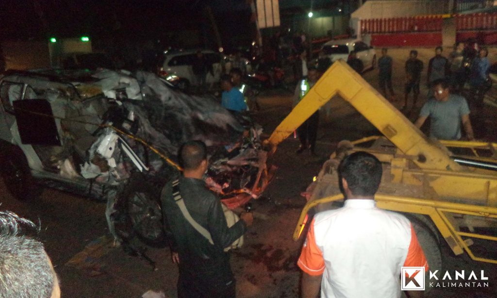 KECELAKAAN dramatis terjadi di Jl A Yani Km 16, Kecamatan Gambut, Kabupaten Banjar, pada Kamis (18/1) malam, tepatnya pukul 23.45 Wita. Sebuah mobil Toyota Land Cruiser warna putih Nopol B 10 YAS, yang dikemudiakan oleh H Agus Maulana (21), anak Ketua DPRD Banjar H Rusli, ringsek setelah dengan kecepatan tinggi menghantam belakang truk Isuzu DA 9307 LC yang membawa muatan air minum kemasan merek Club. Berikut foto-fotonya (foto by hendera kanal kalimantan):