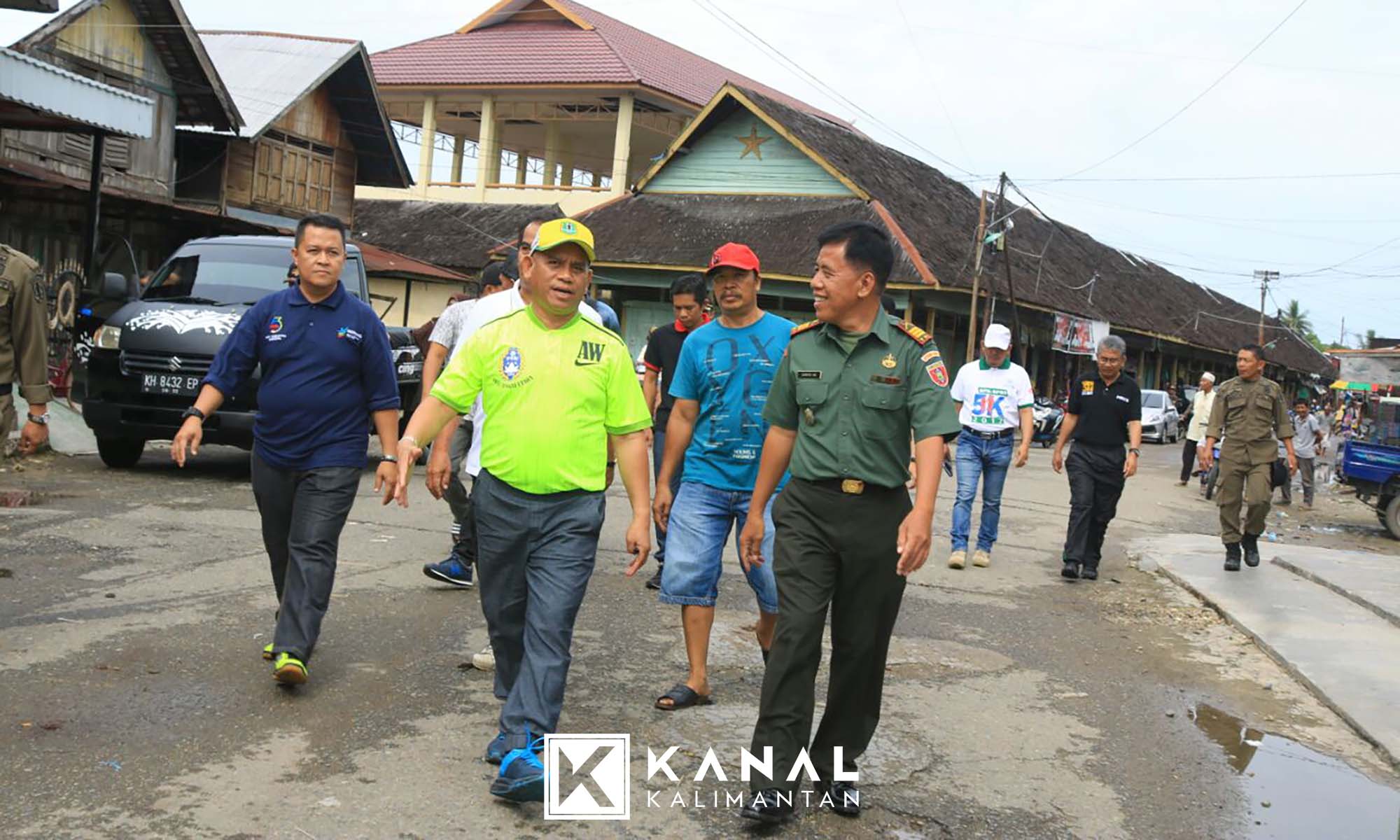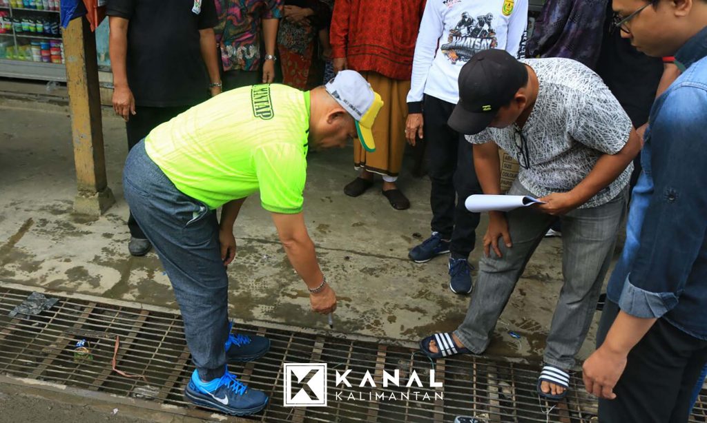 Saat peninjauan pasar Alabio, Bupati HSU didampingi Plt Kadis PU PR Kabupaten HSU Agus Susiawanto, Plt Kadis Perindagkop dan UKM HSU Ir Kaberi, dan Camat Sungai Pandan H Muhammad Iqbal.