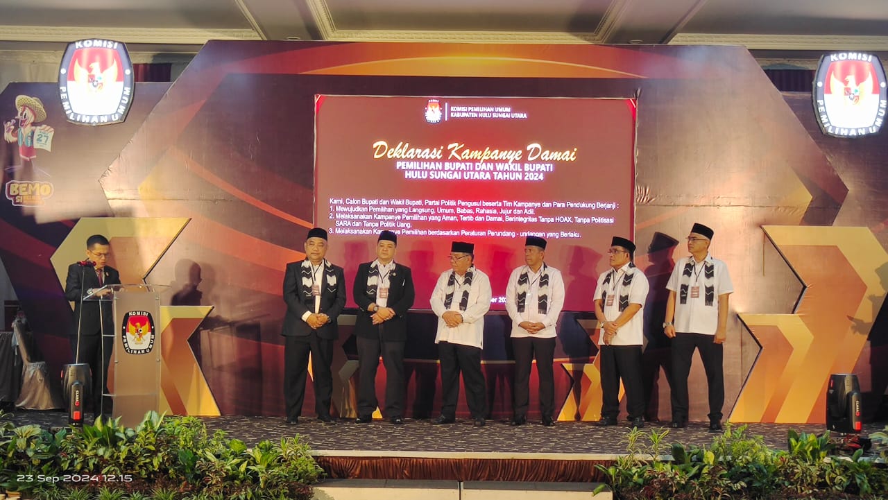 Selain penetapan nomor urut Paslon juga dilaksanakan Deklarasi Kampanye Damai yang dilakukan oleh semua paslon, partai politik pengusung, tim kampanye dan para pendukung dengan berikrar akan selalu menjaga asas Pemilu yang Luber dan Jurdil, menjadikan persatuan dan kesatuan seluruh masyarakat HSU, menjaga kampanye yang aman dan damai.