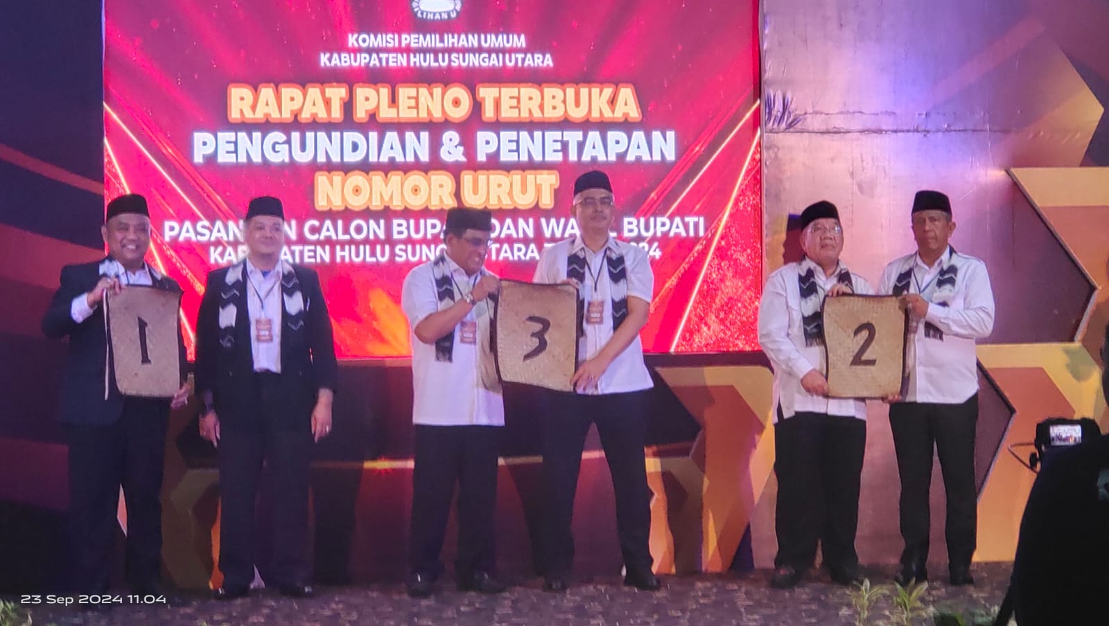 Tiga Paslon Pilbup HSU tahun 2024 mendapatkan nomor urut sebagai berikut :