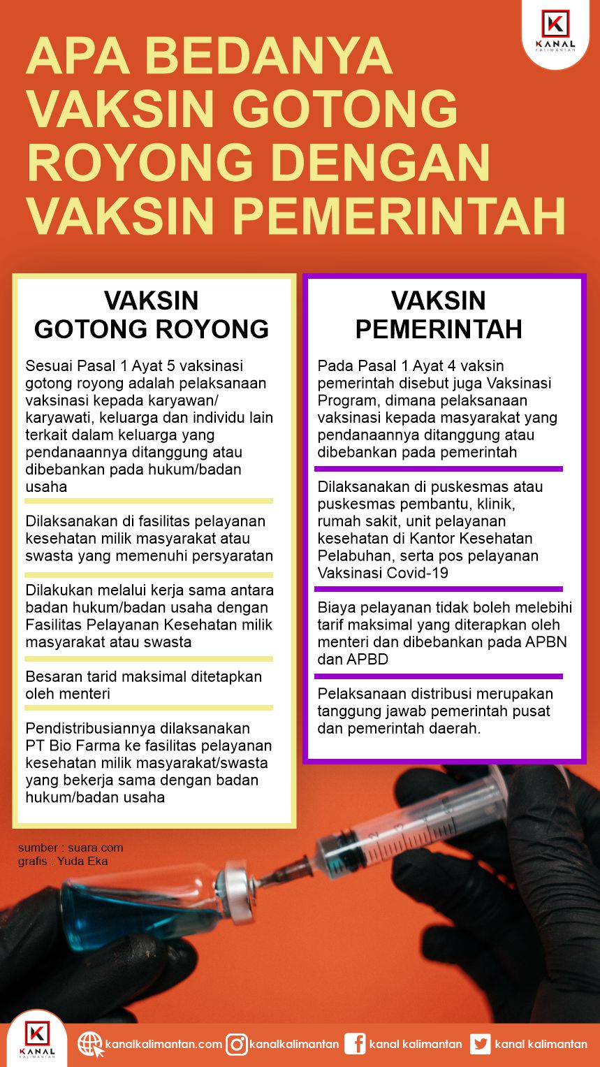 Dalam permenkes tersebut vaksinasi adalah pemberian vaksin yang khusus diberikan dalam rangka menimbulkan atau meningkatkan kekebalan secara aktif terhadap suatu penyakit, sehingga apabila suatu hari terpanjang dengan penyakit tersebut maka tidak akan sakit atau hanya mengalami sakit ringan dan tidak menjadi sumber penularan. Lalu apa perbedaan vaksin gotong royong dengan vaksin pemerintah?