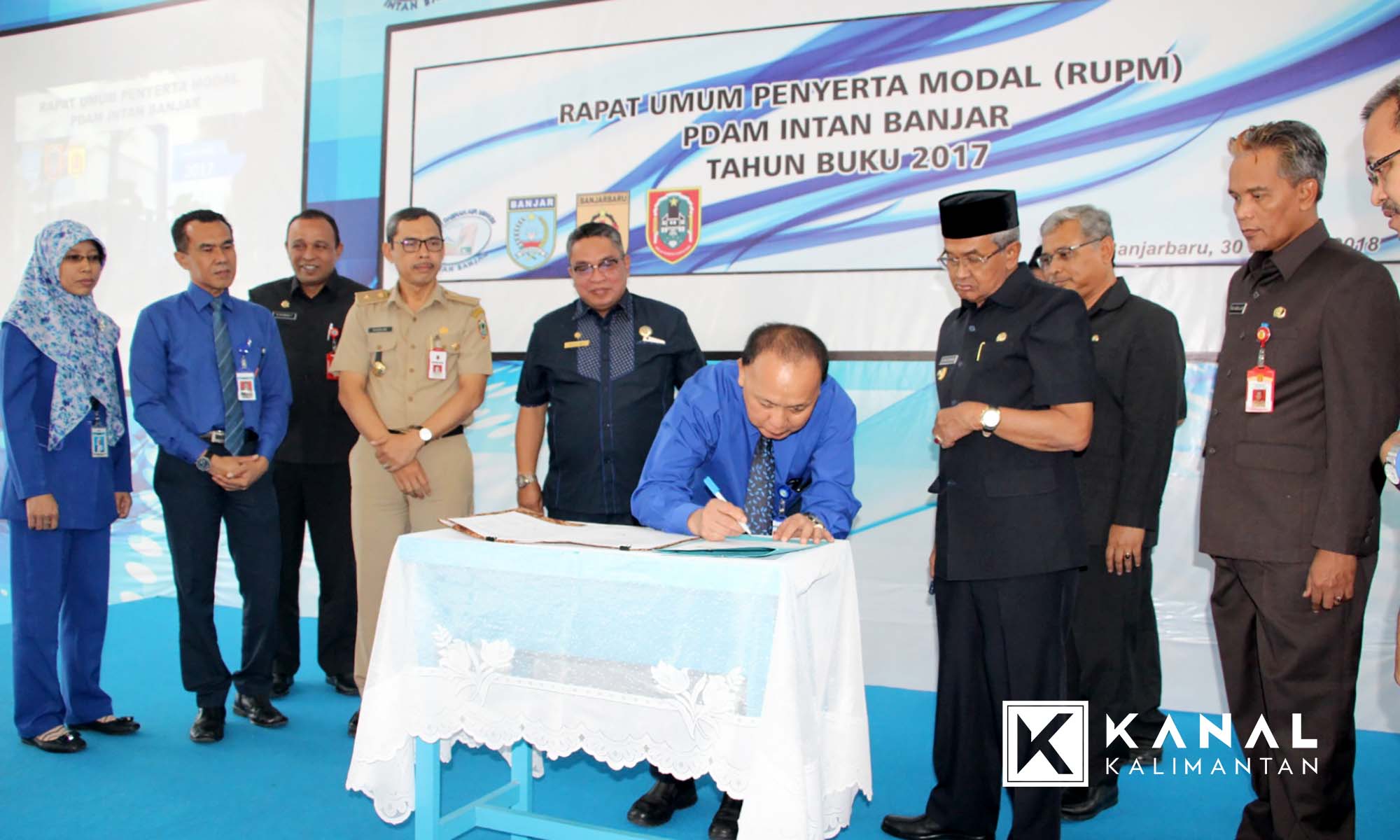 BANJARBARU, Sebagai salah satu BUMD terbaik, Perusahaan Daerah Air Minum (PDAM) Intan Banjar sampaikan hasil kinerja dalam melayani masyarakat dalam penyediaan air bersih tahun buku 2017 dihadapan Bupati Banjar KH Khalilurrahman dan Walikota Banjarbaru Nadjmi Adhani, di kantor PDAM Intan Banjar, Selasa (30/1).