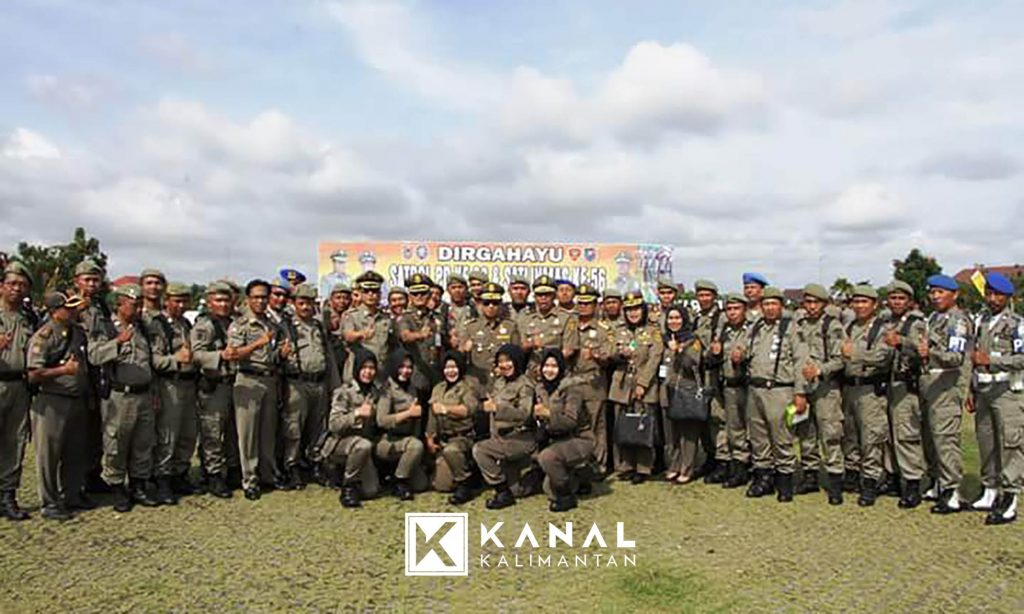 BANJARBARU, Puncak peringatan HUT Satpol PP ke-68 dan Satlinmas ke-56 tahun 2018 tingkat nasional berlangsung di perkantoran Gubernur Kalsel, dihadiri ribuan anggota Satpol PP dari berbagai daerah di Indonesia, Sabtu (3/3).